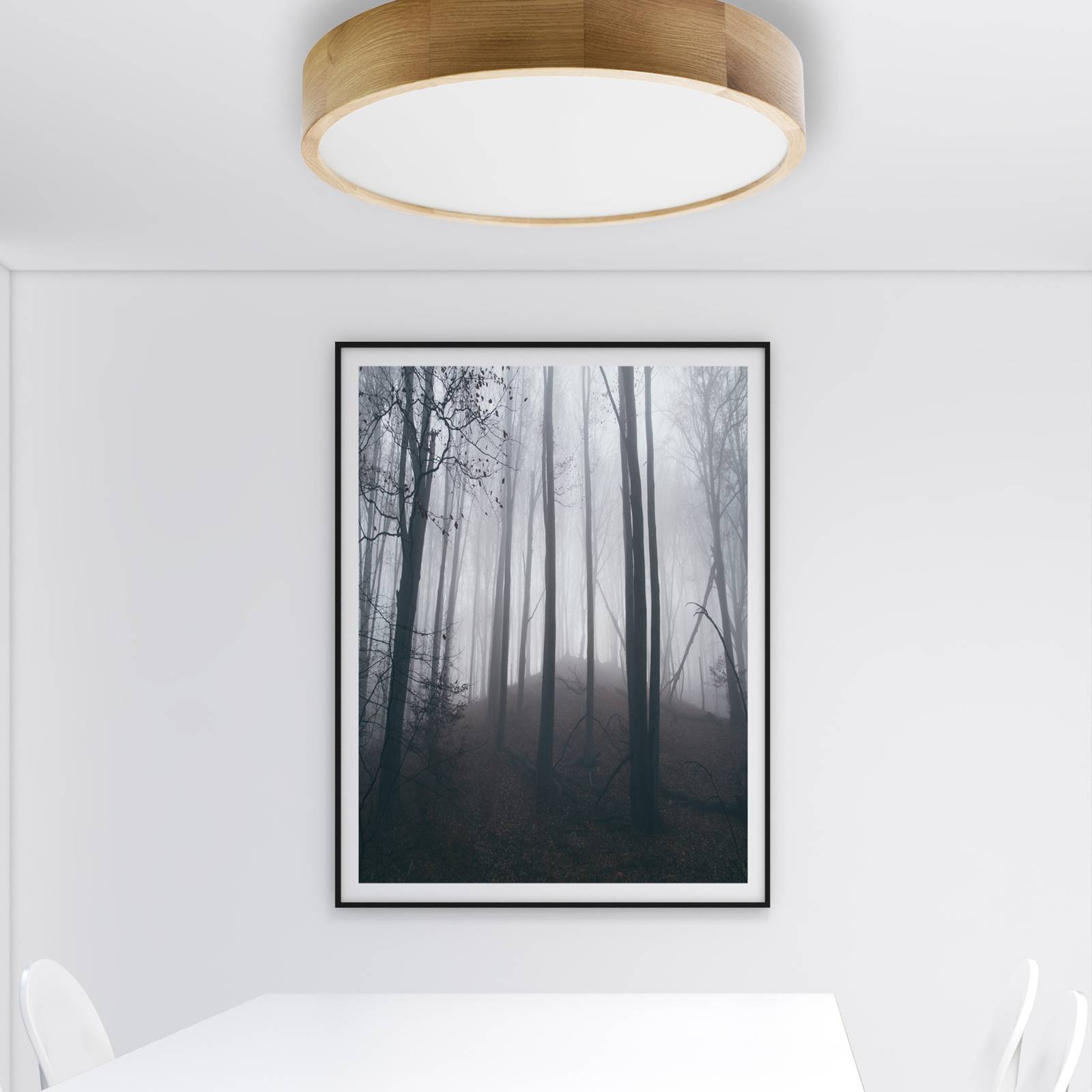 TEMAR LIGHTING Stropní světlo Cleo DR475 senzor IP20, dub Ø 48 cm, Obývací pokoj / jídelna, dubové dřevo, sklo, E27, 40W, K: 8cm