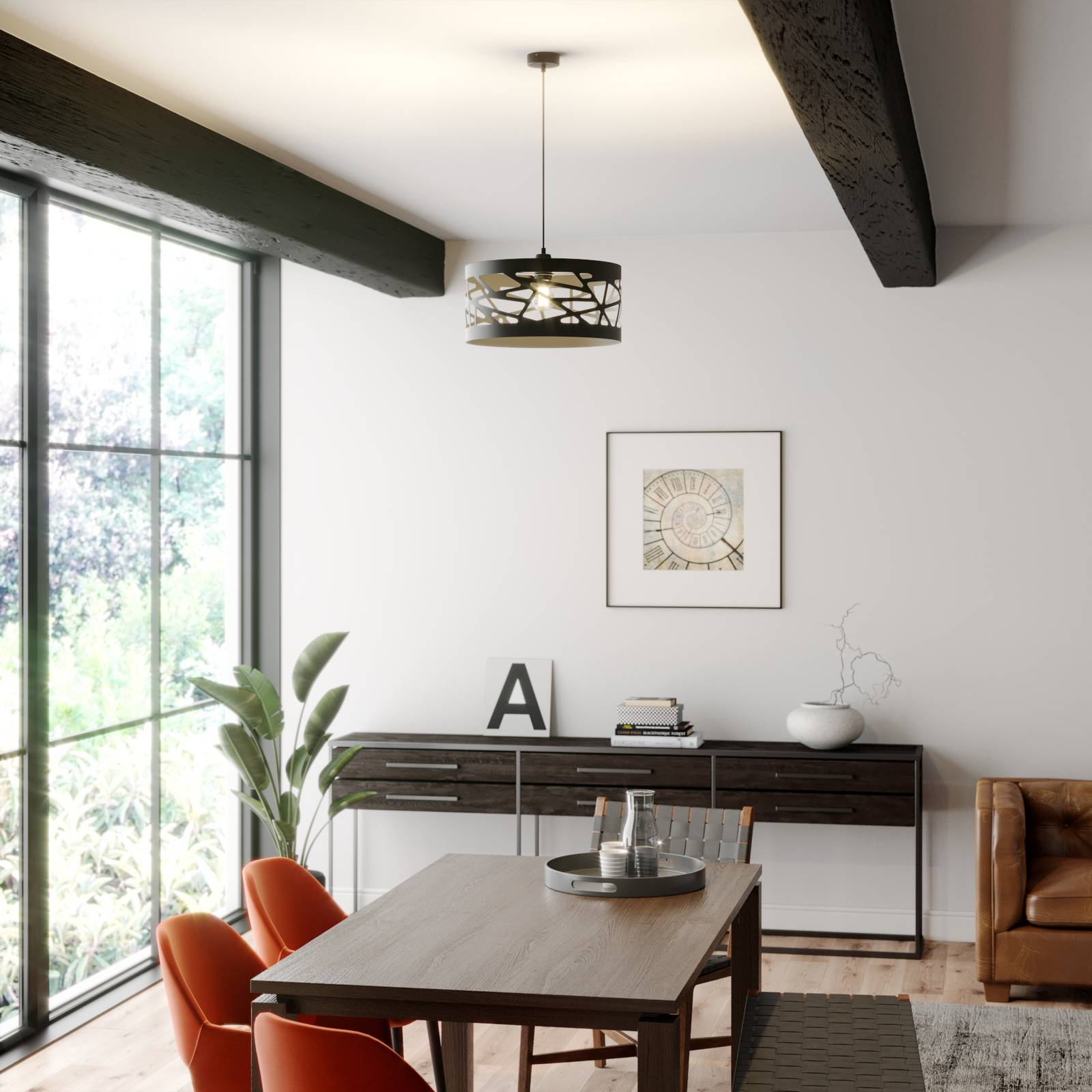 SIGMA Závěsný světelný modul Frez vzorek stínidla Ø39cm černý, Obývací pokoj / jídelna, Práškově lakovaná ocel, E27, 60W