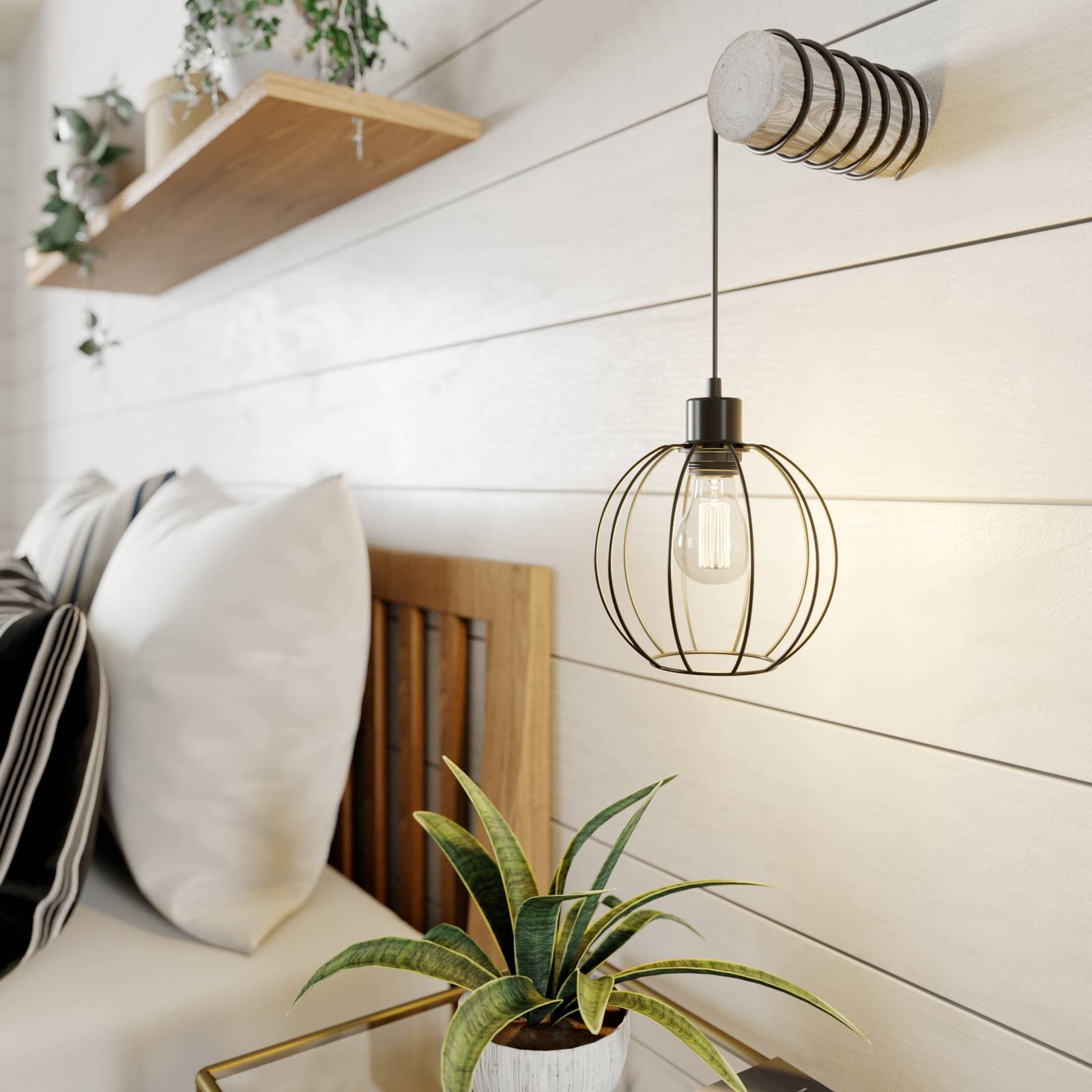 BRITOP Nástěnné světlo Karou, šedá mořená, Obývací pokoj / jídelna, borové dřevo, kov, plast, E27, 25W, K: 33cm
