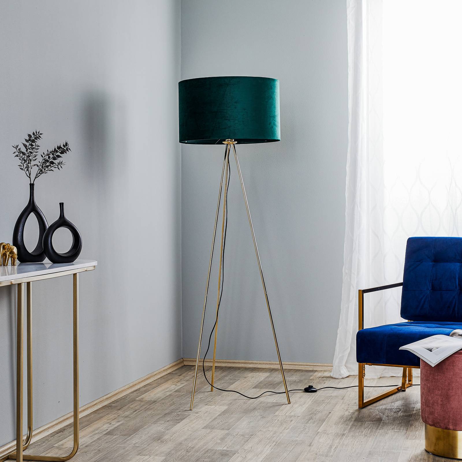 Domiluce Stojací lampa Monaco, trojnožka zlatá zelený samet, Obývací pokoj / jídelna, samet, ocel, E27, 15W, K: 155cm