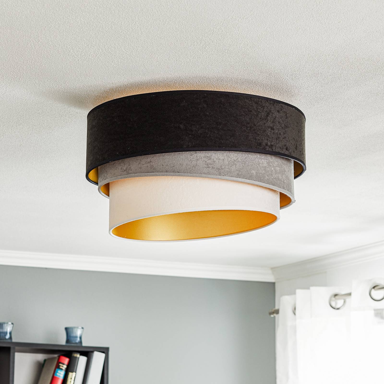 Duolla Stropní světlo Devon, černá/šedá/ecru/zlatá Ø45cm, Obývací pokoj / jídelna, textilie, PVC, E27, 40W, K: 25cm