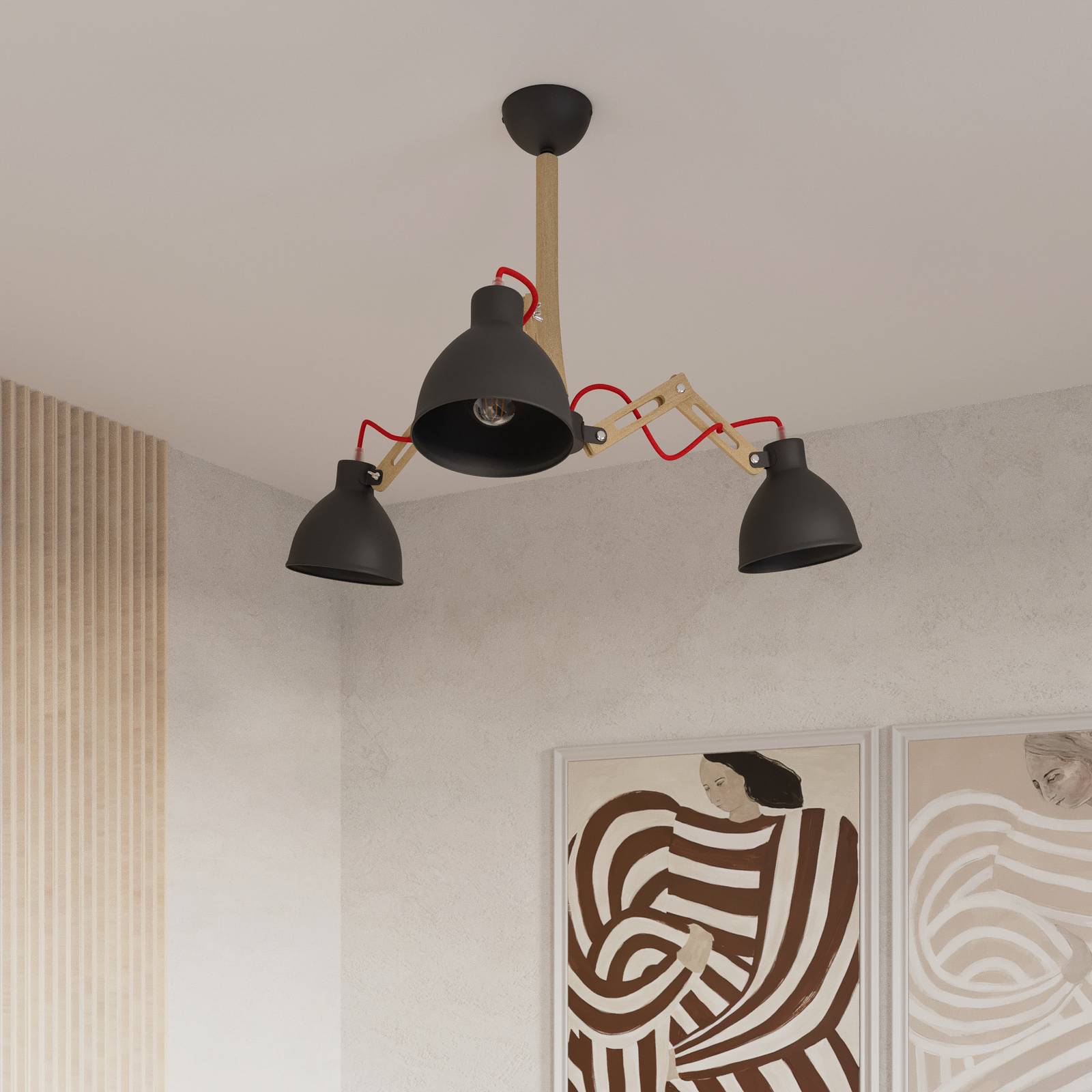 Lamkur Stropní světlo Skansen 3 zdroje nastavitelné černé, Obývací pokoj / jídelna, dřevo, kov, E27, 60W, K: 39cm
