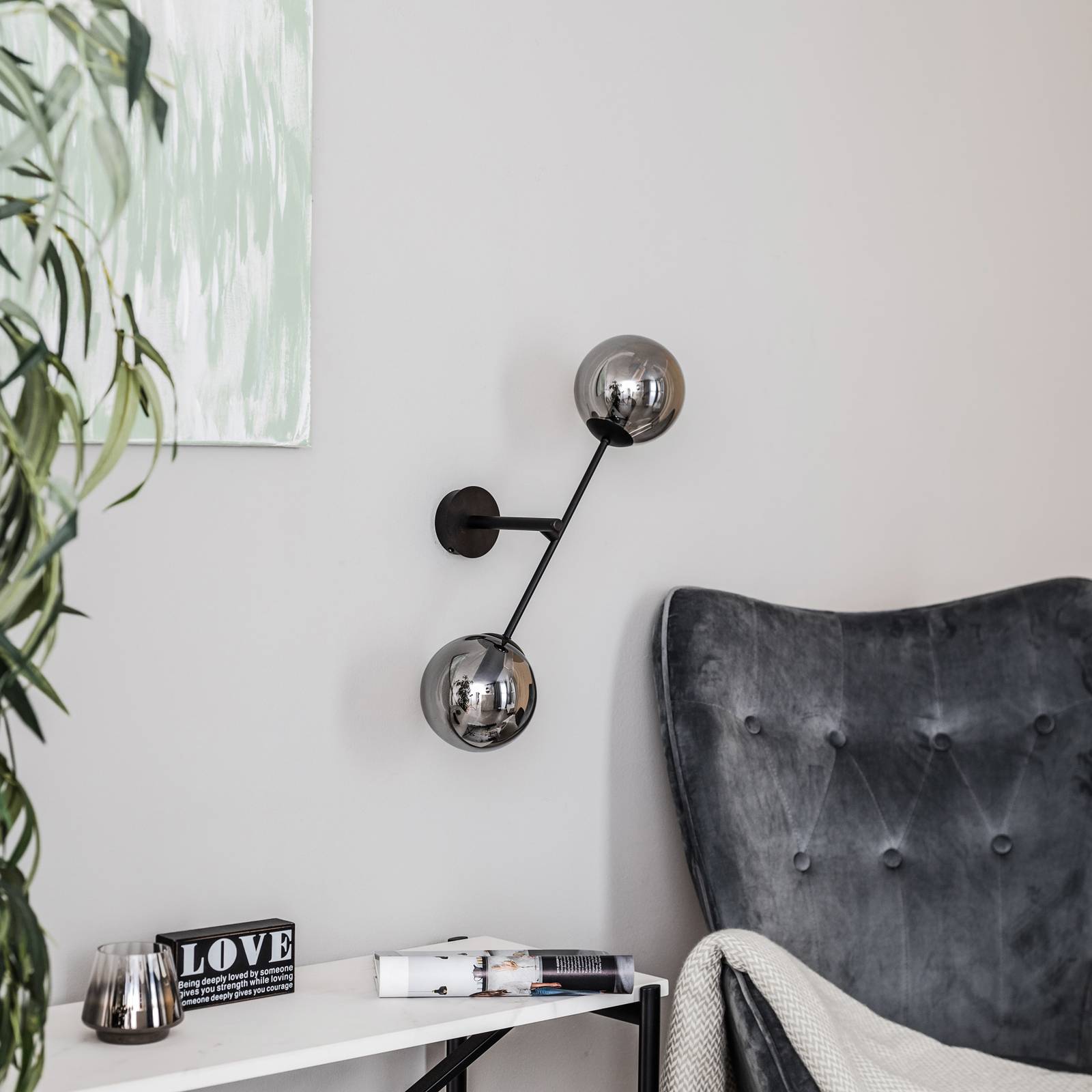 Euluna Nástěnné světlo Boston, černá/grafit, 1 zdroj, Obývací pokoj / jídelna, ocel práškovaná, sklo, E14, 40W, K: 29cm