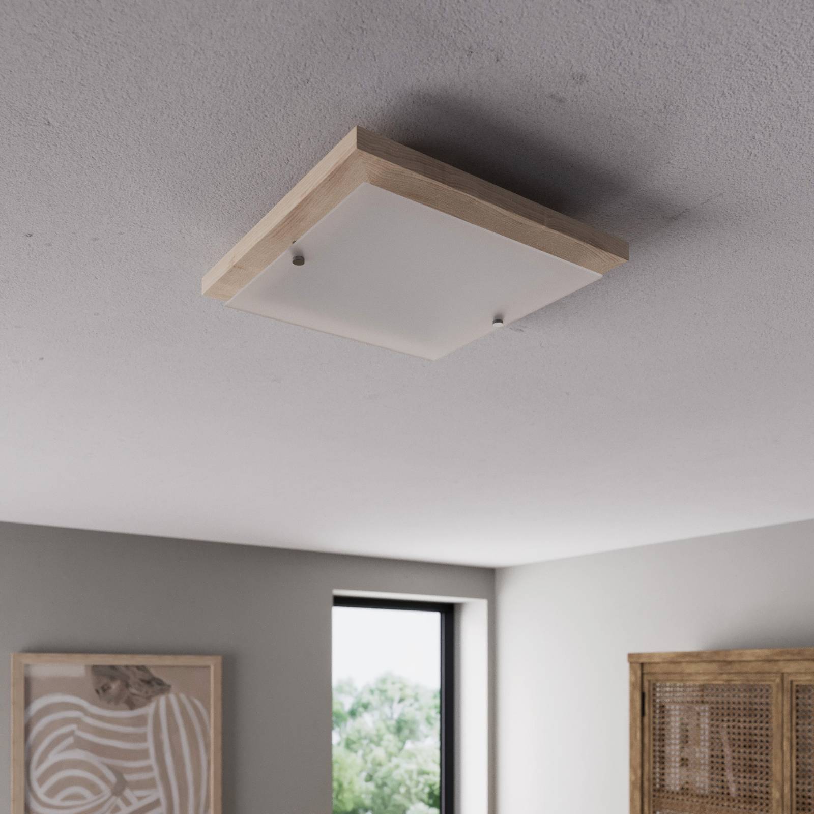 Envostar Kerio stropní světlo, 35×35 cm, přírodní, Obývací pokoj / jídelna, dřevo, sklo, E27, 15W, P: 35 cm, L: 35 cm, K: 6.5cm