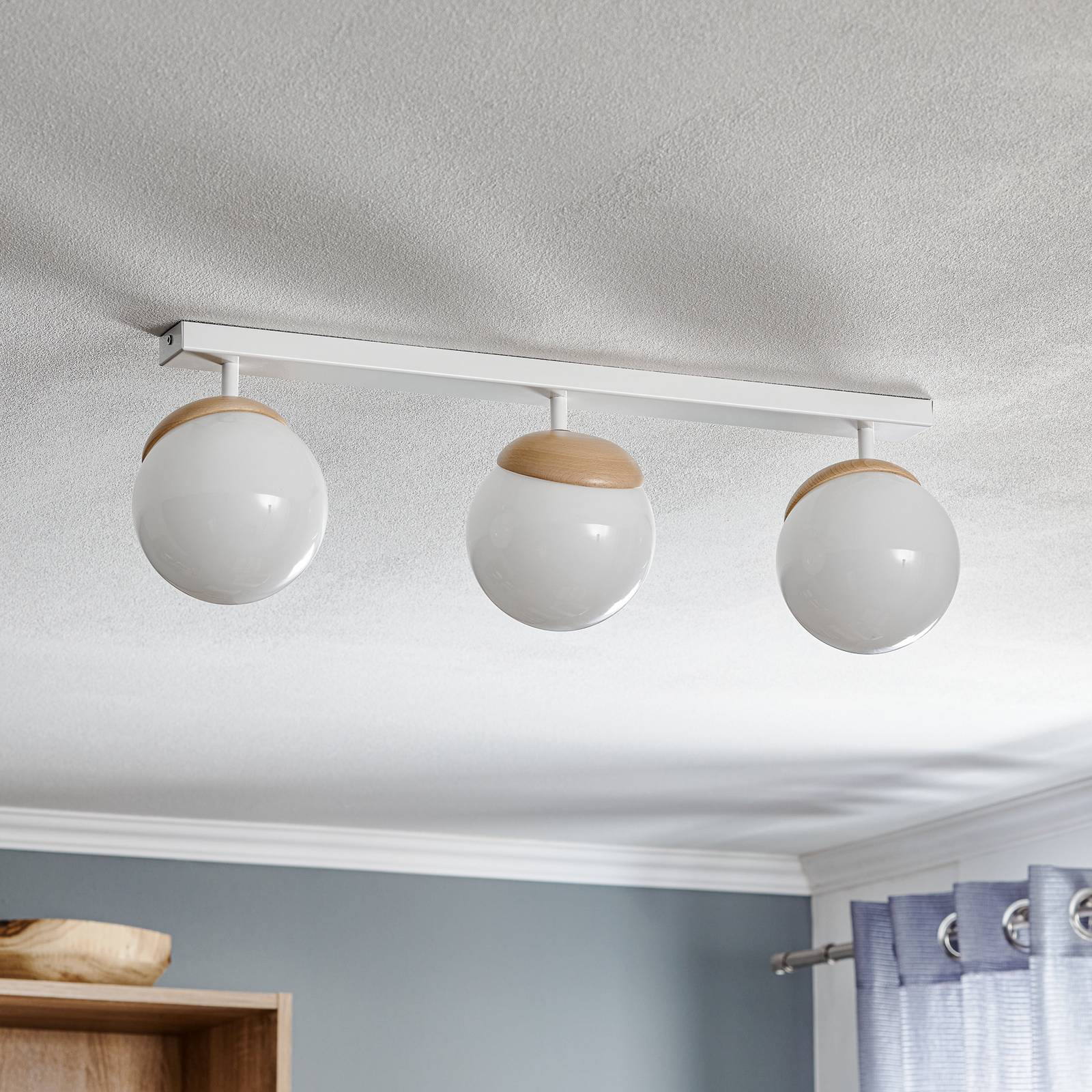 Eko-Light Stropní světlo Sfera 3 zdroje podlouhlé sklo/dřevo, Obývací pokoj / jídelna, sklo, dřevo, ocel, E14, 40W, P: 65 cm, L: 20 cm, K: 25cm
