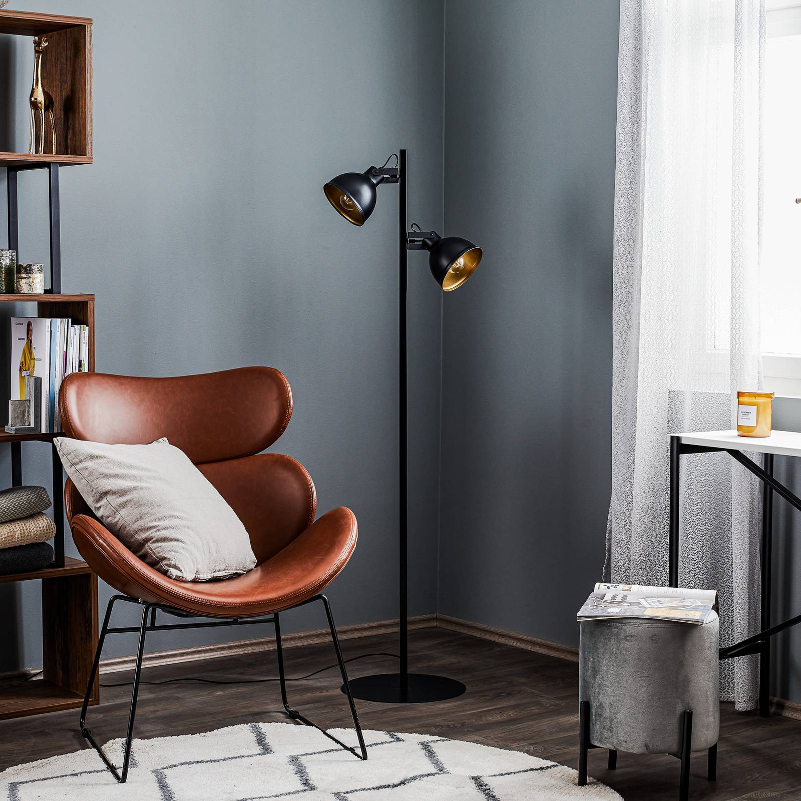 SIGMA Stojací lampa Trial, 2 stínidla otočná černá/zlatá, Obývací pokoj / jídelna, ocel, E27, 60W, K: 150cm