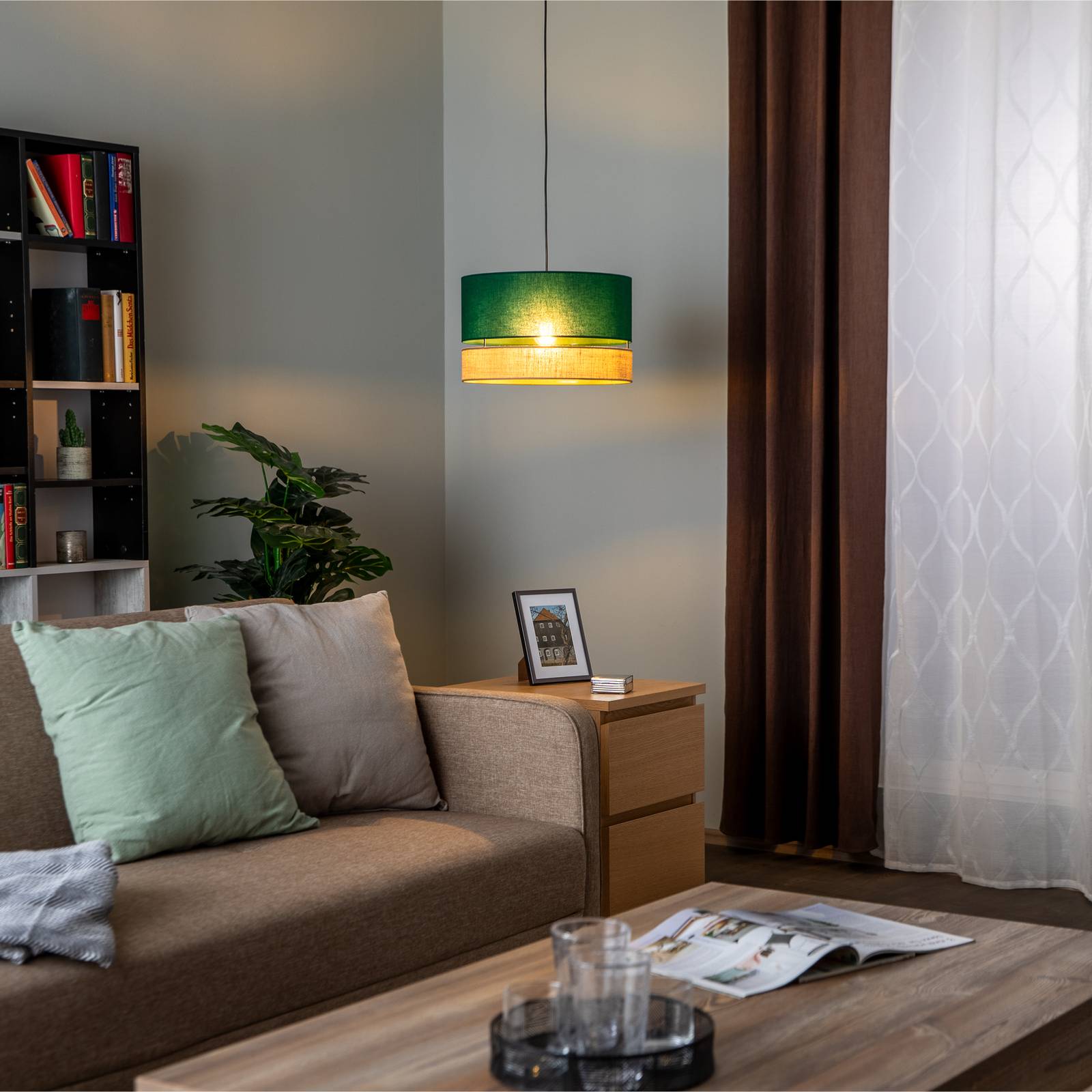 Euluna Levo závěsné světlo, Ø 40 cm, juta/zelená, Obývací pokoj / jídelna, textil, juta, fólie, kov, E27, 15W, K: 25cm