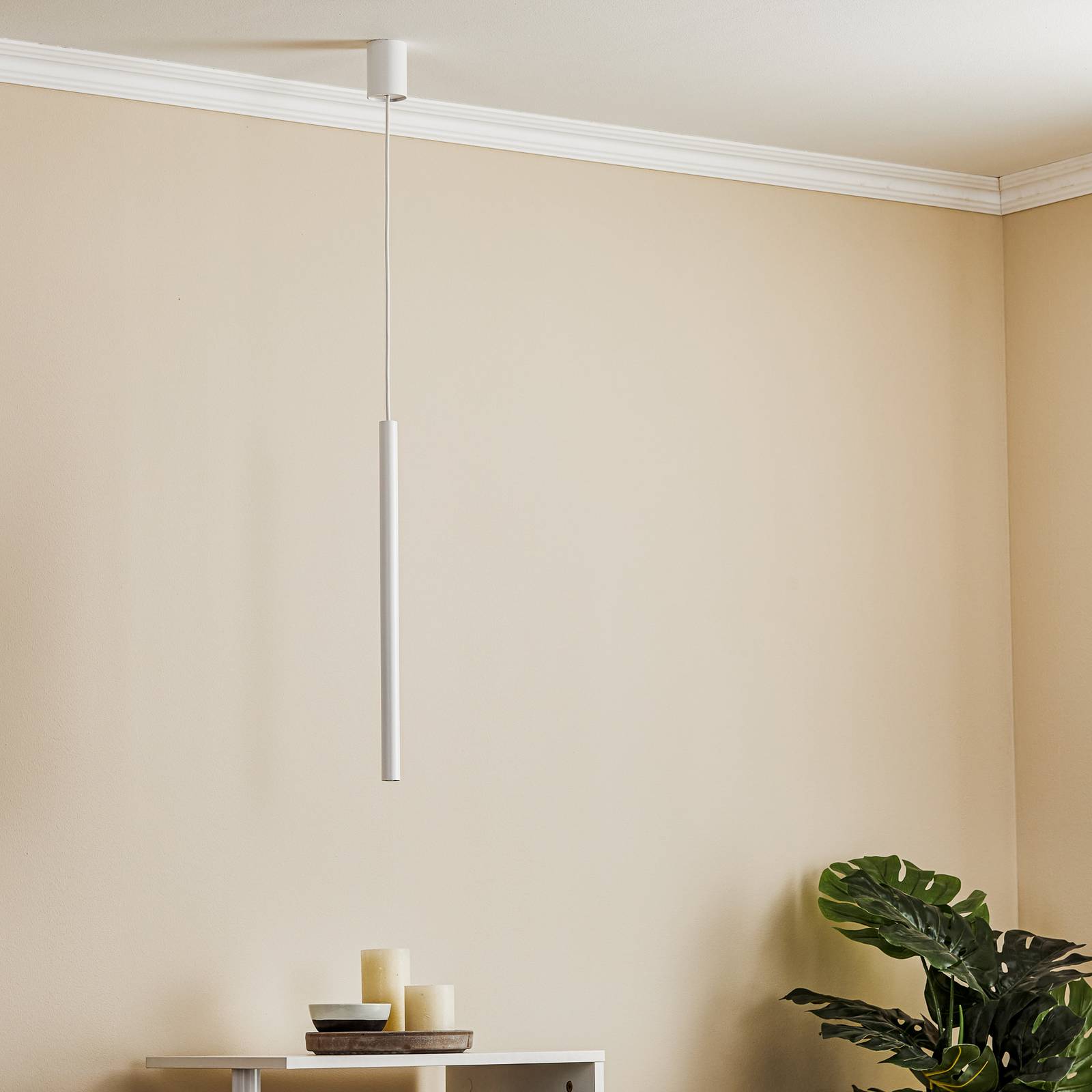 Euluna Závěsná lampa Laser, jednoplamenná, bílá, stínidlo 49 cm, Obývací pokoj / jídelna, Ocel, G9, 10W, K: 49cm