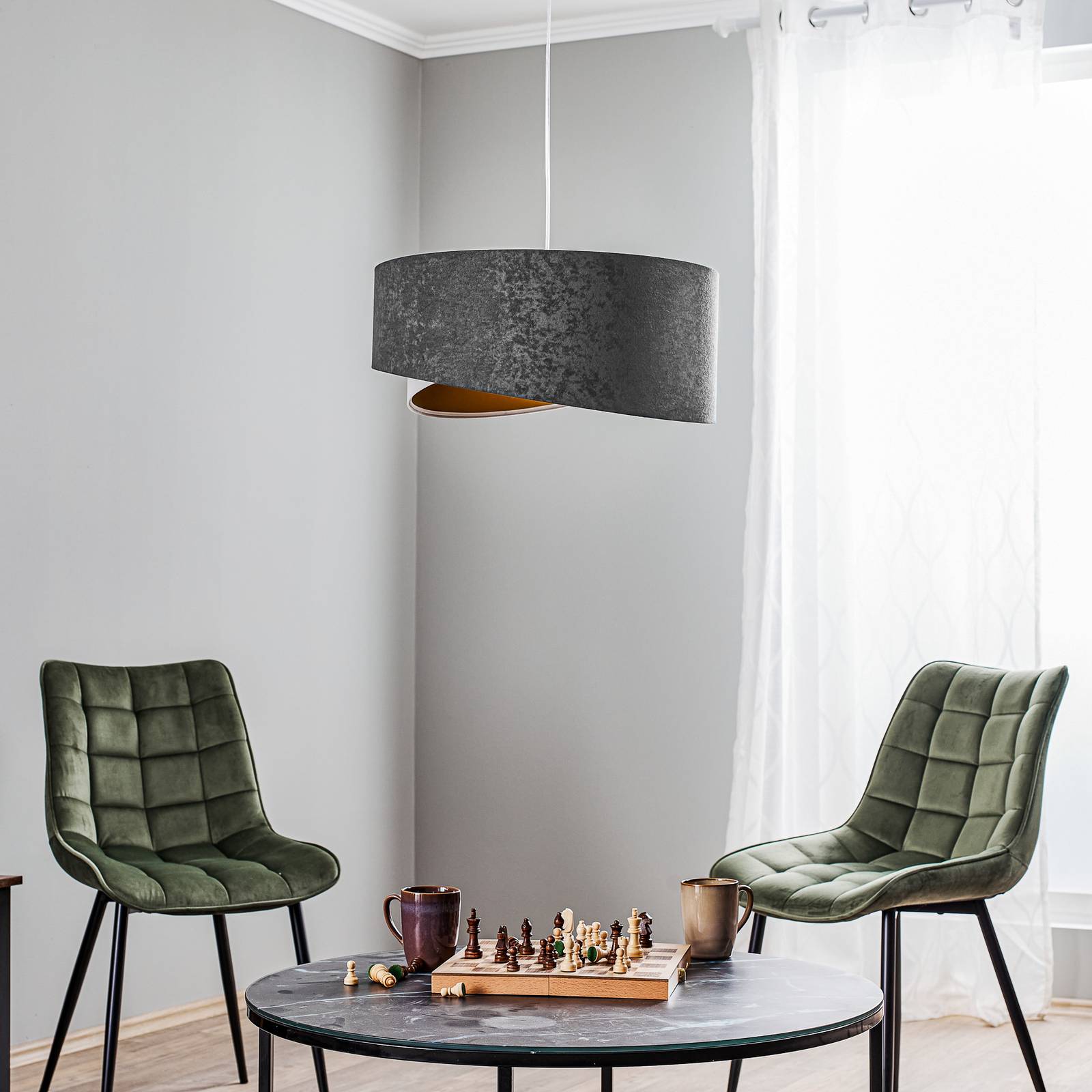 Maco Design Závěsná lampa Vivien tricolour tmavě šedá/bílá/zlatá, Obývací pokoj / jídelna, Velur, plast, E27, 40W, K: 25cm