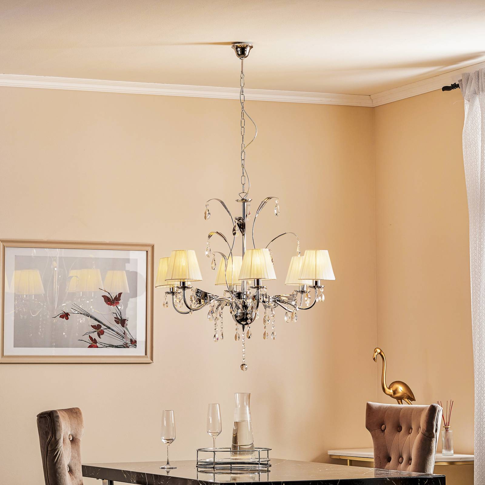 ONLI Lustr Jacqueline, 6 zdroje, bílý, Obývací pokoj / jídelna, železo, tkaniny, křišťálové sklo K9, E14, 6W