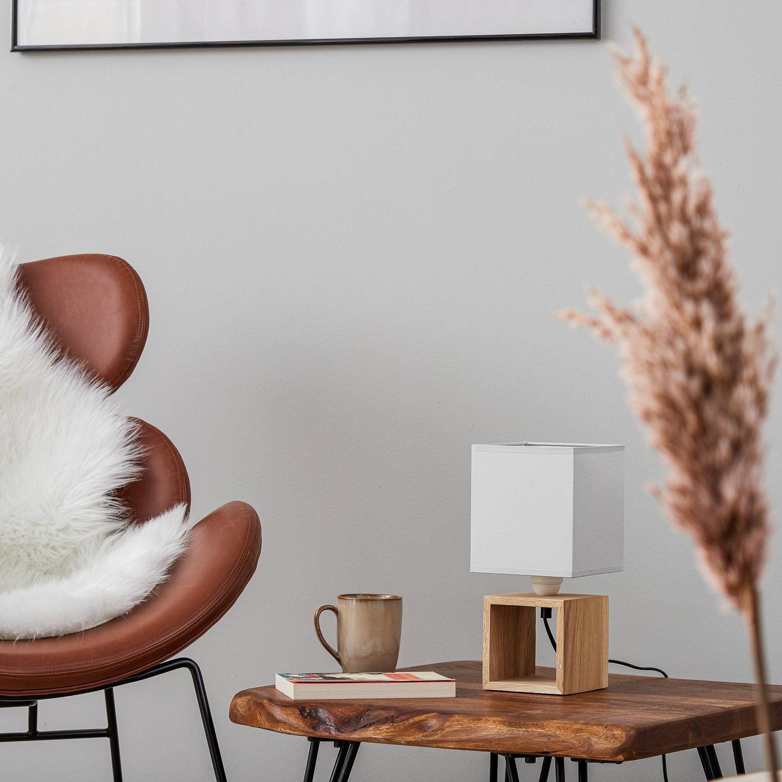BRITOP Stolní lampa Monas, naolejovaný dub, šedá, Obývací pokoj / jídelna, dubové dřevo, textil, E27, 25W, P: 13.5 cm, L: 13.5 cm, K: 29cm