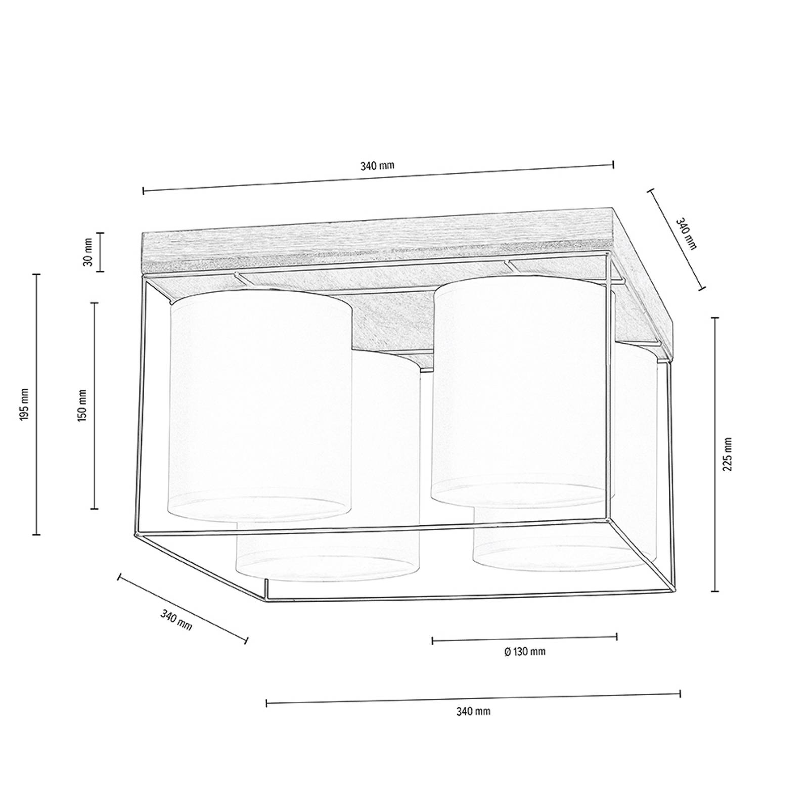 BRITOP Stropní svítidlo Trapper, čtvercové, 4 zdroje, Obývací pokoj / jídelna, dubové dřevo, kov, textil, E27, 25W, P: 34 cm, L: 34 cm, K: 22.5cm