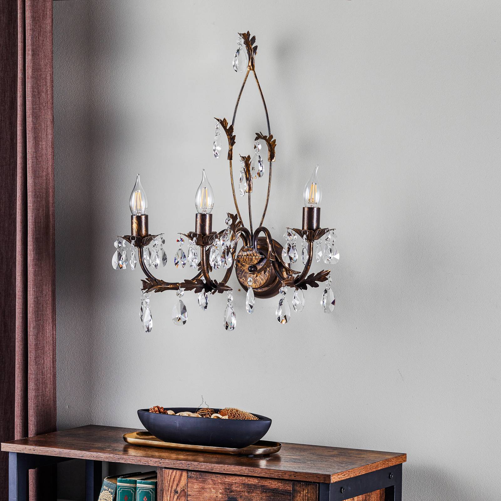 ONLI Teresa nástěnné světlo jako lustr, 3 zdroje, Obývací pokoj / jídelna, kované železo, křišťálové sklo K9, E14, 6W, L: 51 cm, K: 51cm