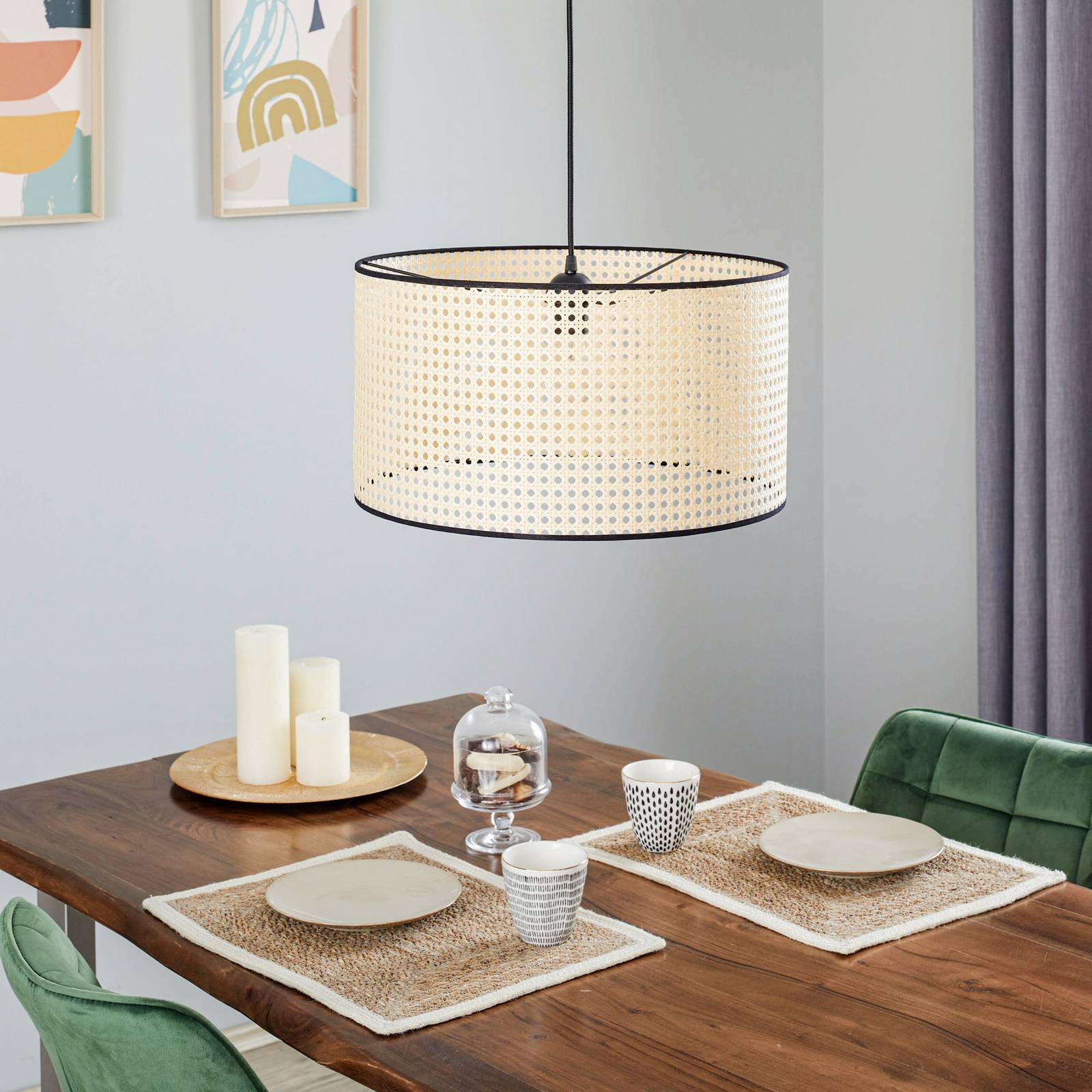 Duolla Závěsné světlo Roller z ratanu, béžová/černá, Obývací pokoj / jídelna, ratan, E27, 15W, K: 24cm