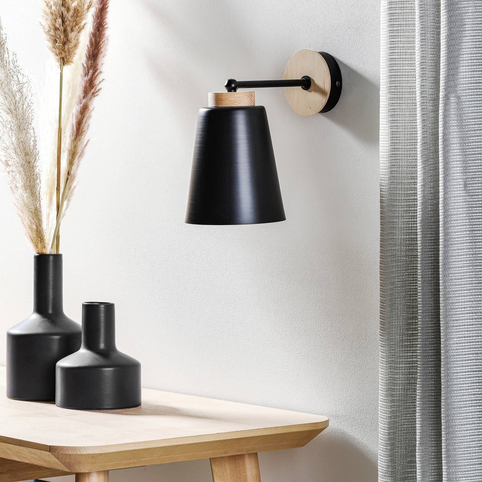 EMIBIG LIGHTING Nástěnné světlo Periot K1 s dřevěným dekorem černá, Obývací pokoj / jídelna, ocel, dřevo, E27, 60W, K: 20cm