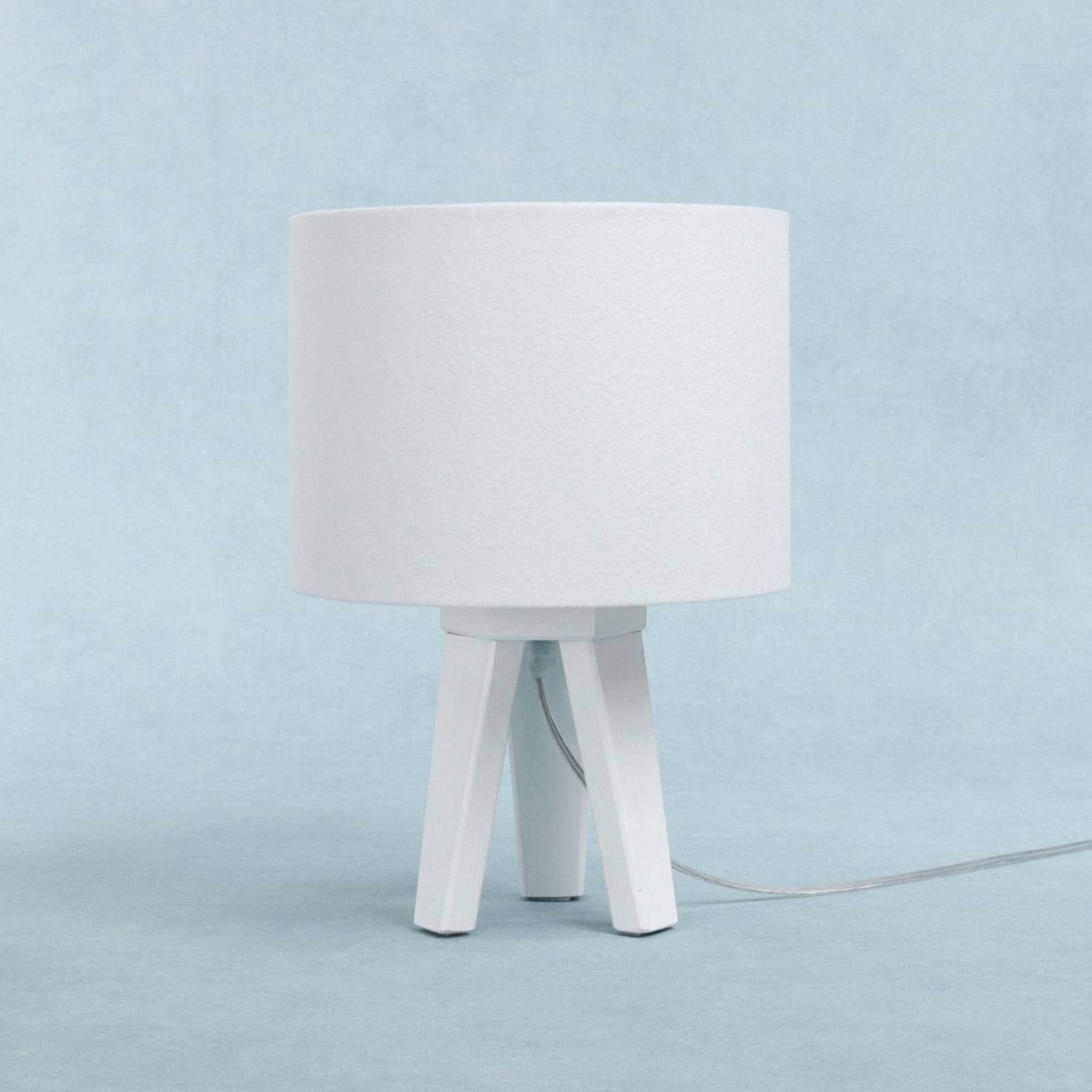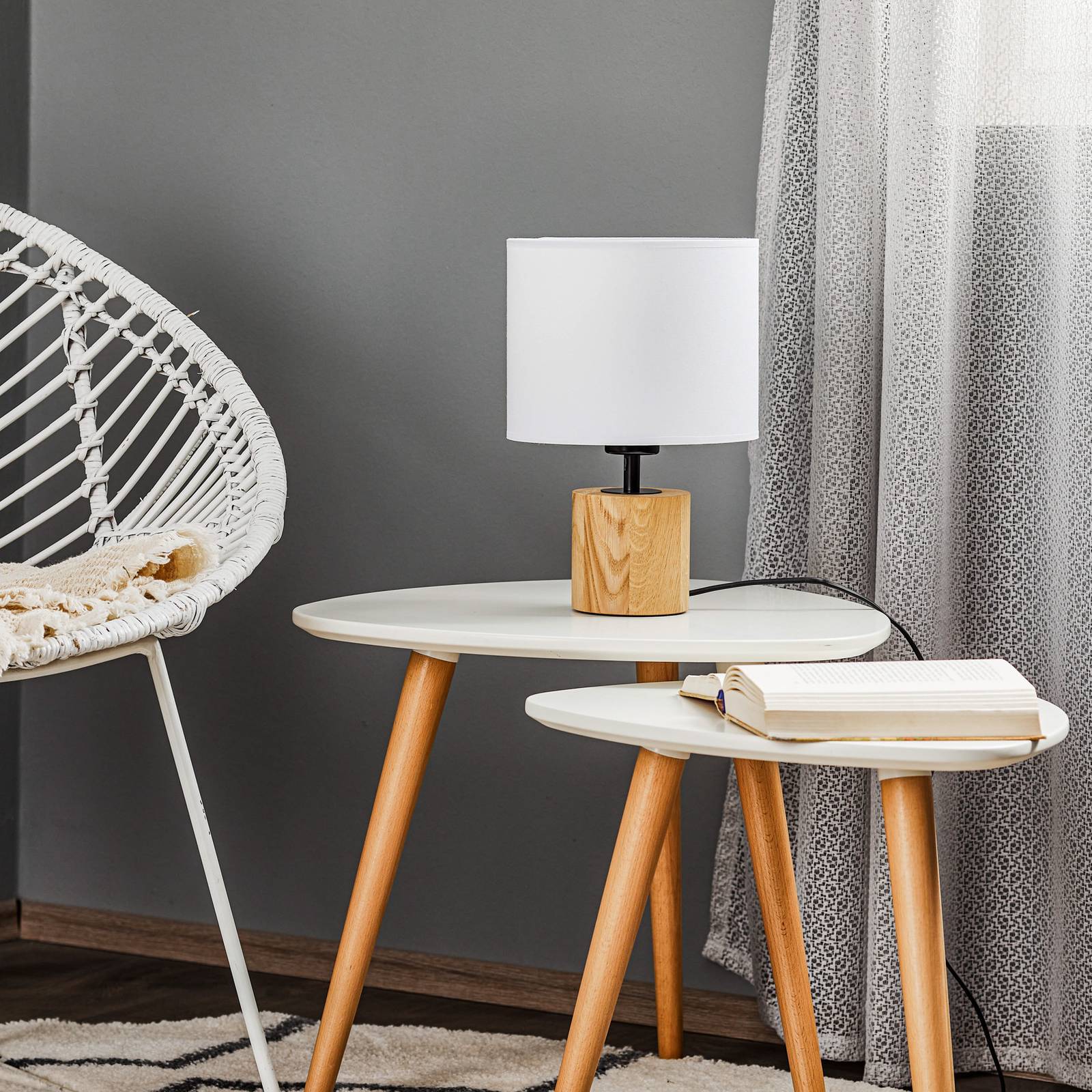 BRITOP Stolní lampa Tidas, naolejovaný dub Ø 20 cm, bílá, Obývací pokoj / jídelna, dubové dřevo, kov, textil, E27, 25W, K: 32cm