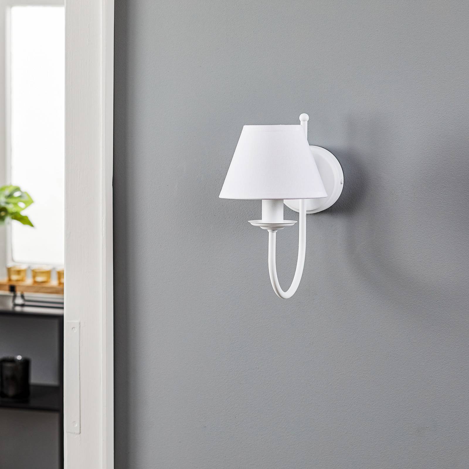 Domiluce Nástěnné světlo Bona, jeden zdroj, bílá, Obývací pokoj / jídelna, kov, textil, E14, 15W, L: 15 cm, K: 26cm