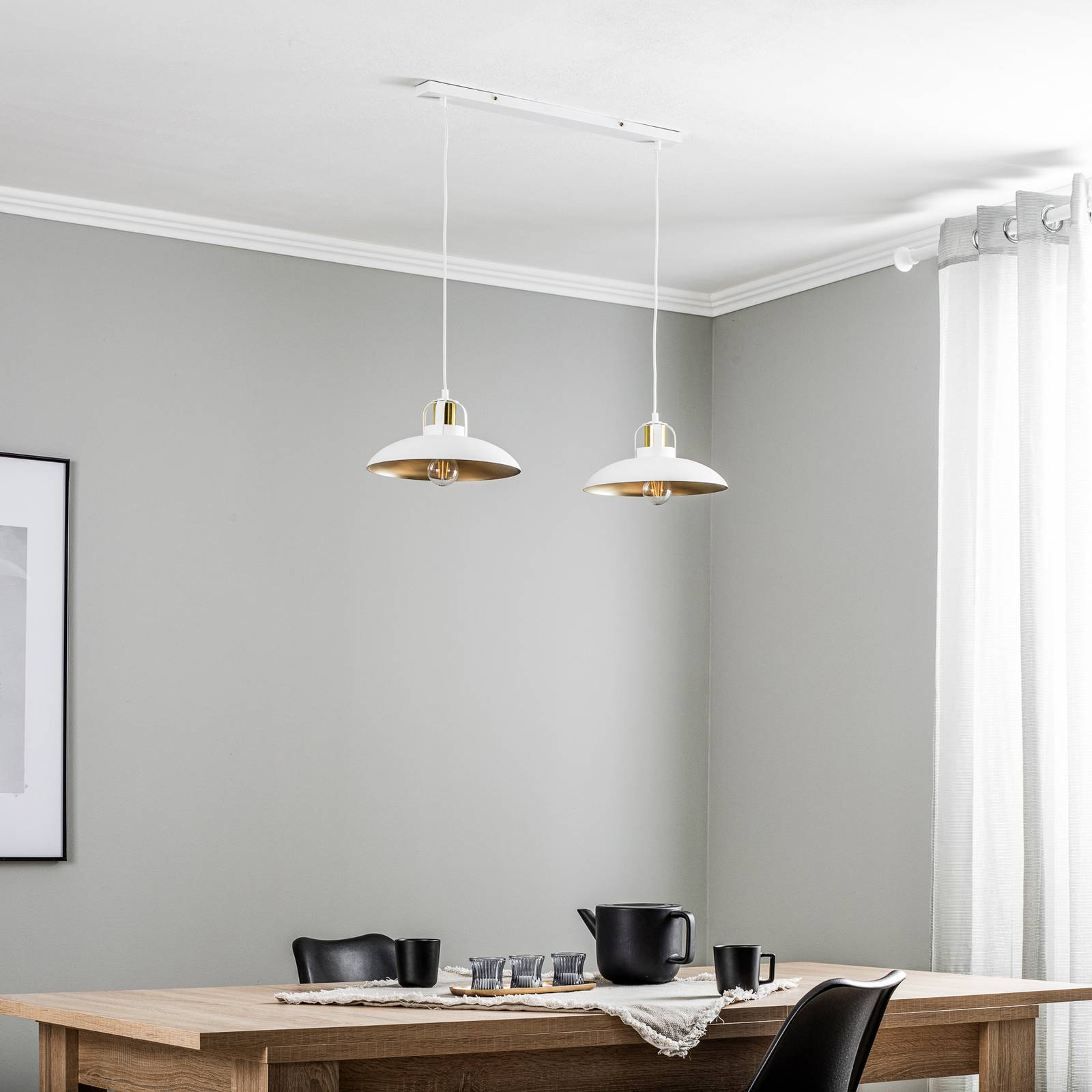 Eko-Light Závěsné světlo Felix, bílá/zlatá, 2 zdroje, Obývací pokoj / jídelna, kov, E27, 60W, P: 80 cm, L: 29 cm, K: 15cm