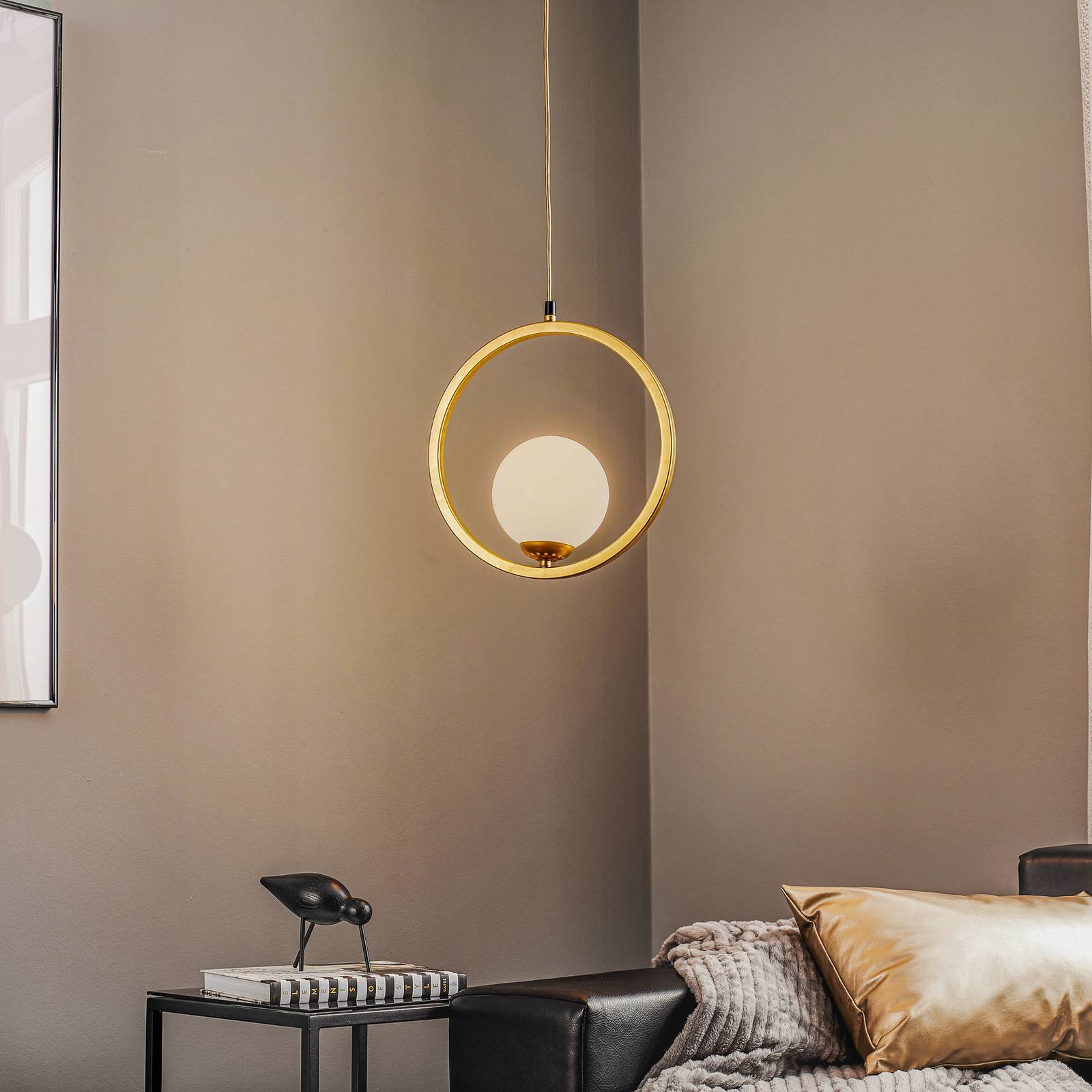 Eko-Light Závěsné světlo Vienna, opálové sklo, mosaz 1 zdroj, Obývací pokoj / jídelna, ocel, sklo, E14, 40W, L: 14 cm