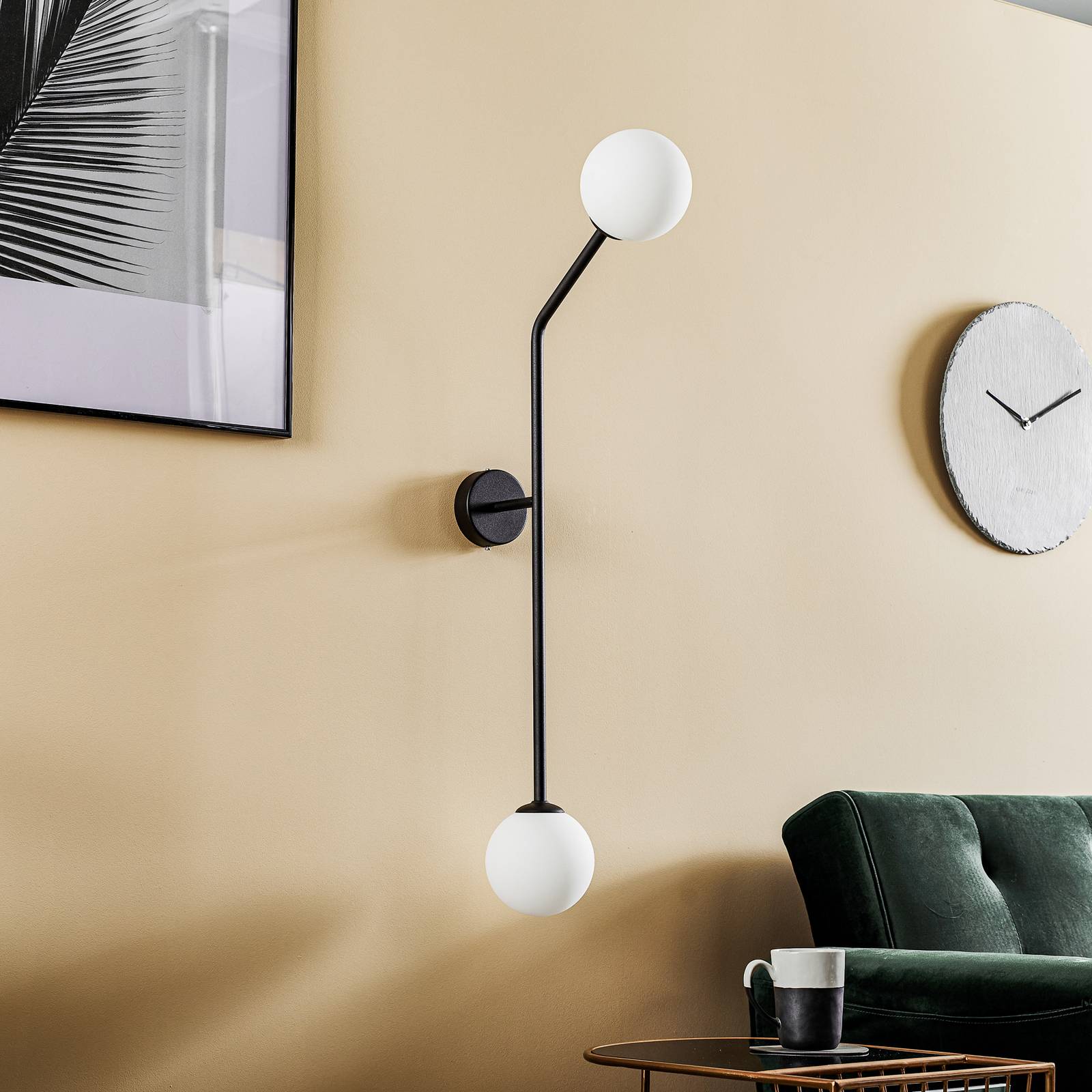 ALDEX Nástěnné světlo Pure, dva zdroje, černá, svislé, Obývací pokoj / jídelna, kov, mražené sklo, E14, 40W, L: 14 cm, K: 99cm