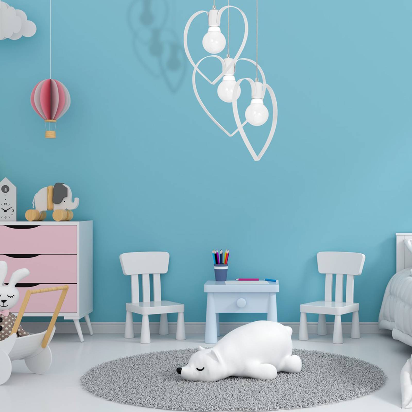 Eko-Light Závěsné světlo Amore, tři zdroje, bílá, Dětský pokoj, kov, E27, 60W, K: 31cm