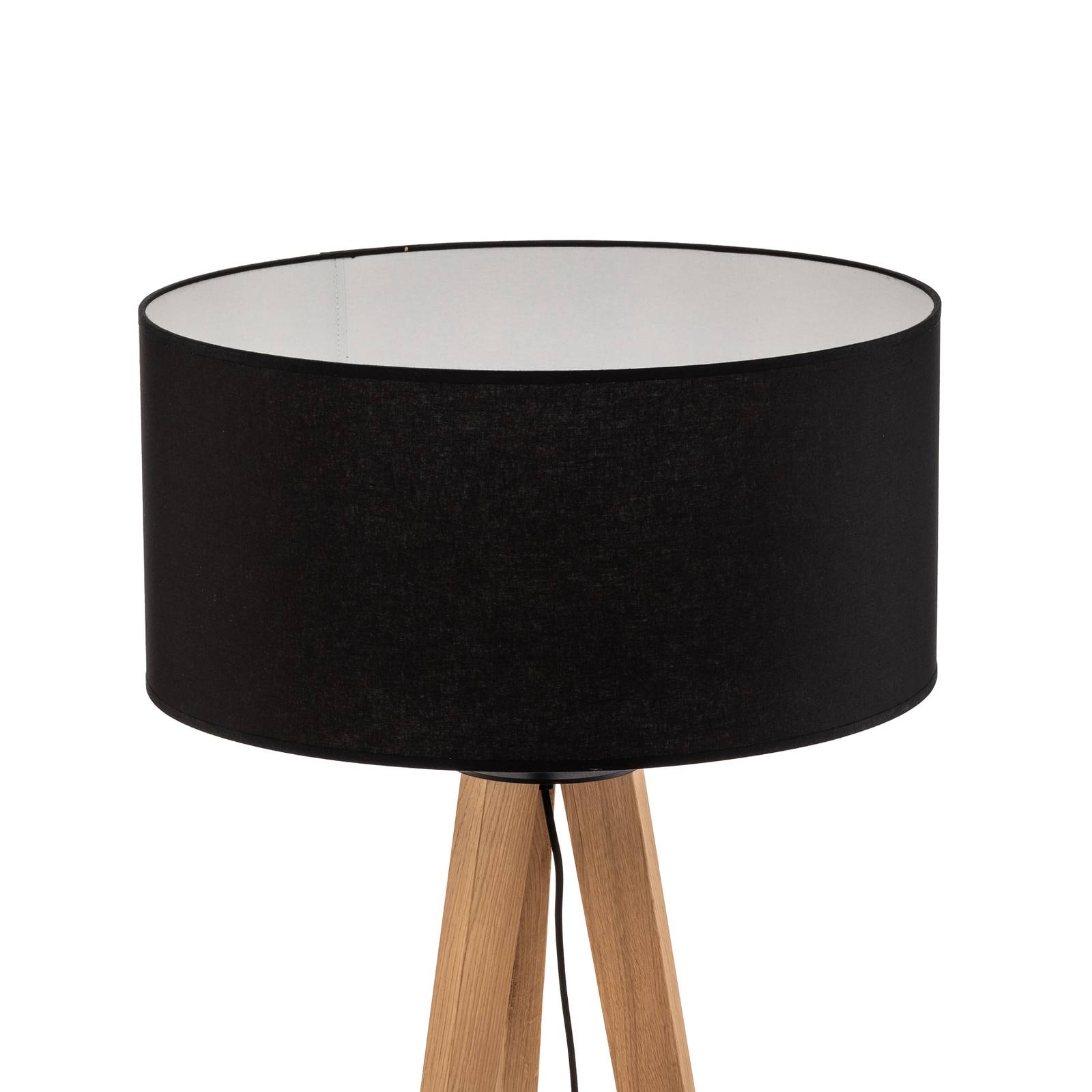 BRITOP Stojací lampa Maira, třínožka, olejovaný dub černá, Obývací pokoj / jídelna, dřevo, kov, textil, E27, 60W, K: 160cm