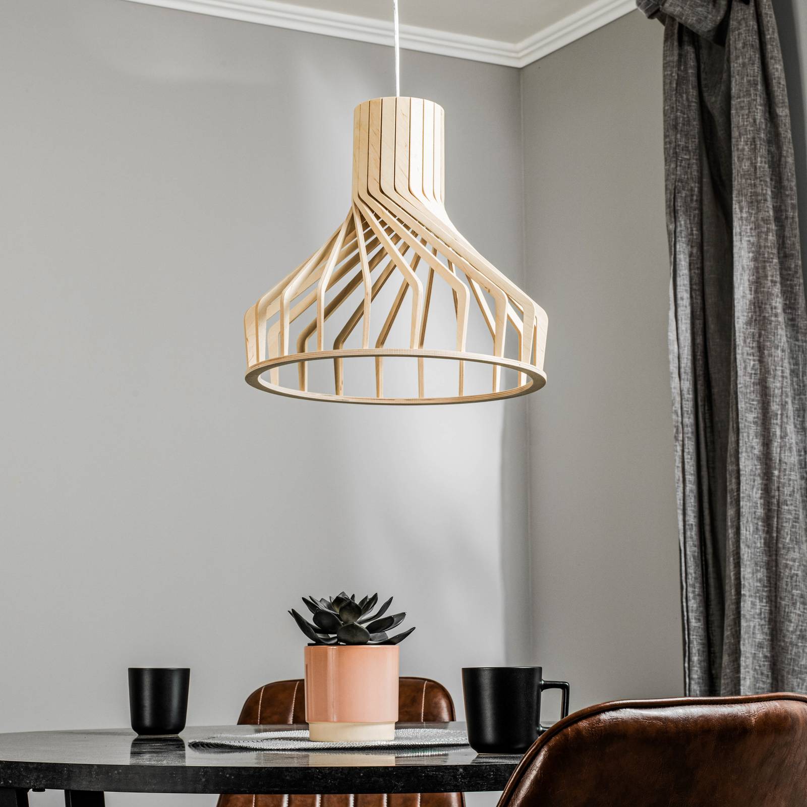 Euluna Závěsné světlo Bio S s dřevěným stínidlem, GU10, Obývací pokoj / jídelna, dřevo, GU10, 35W, K: 37cm