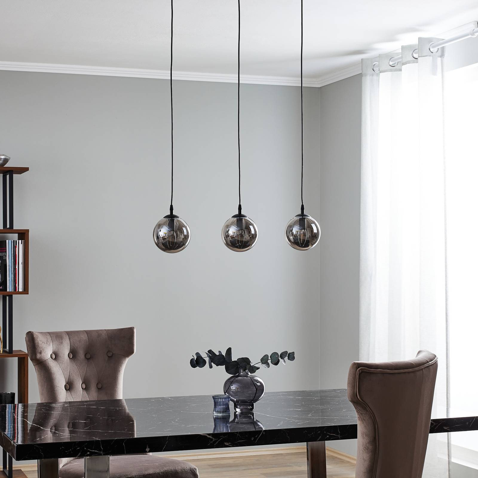 EMIBIG LIGHTING Skleněné závěsné svítidlo, 3 světla, rovné, černé, grafitové, sklo, Obývací pokoj / jídelna, Práškově lakovaná ocel, sklo, E14, 40W, P: 70 cm, L: 14 cm