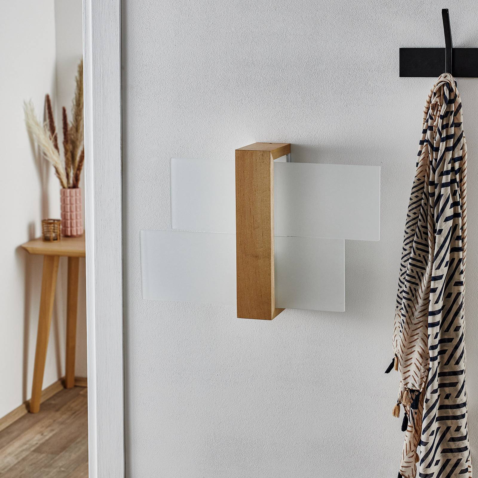 SOLLUX LIGHTING Nástěnné světlo Shifted 1, sklo a světlé dřevo, Obývací pokoj / jídelna, sklo, dřevo, E27, 60W, L: 43 cm, K: 30cm