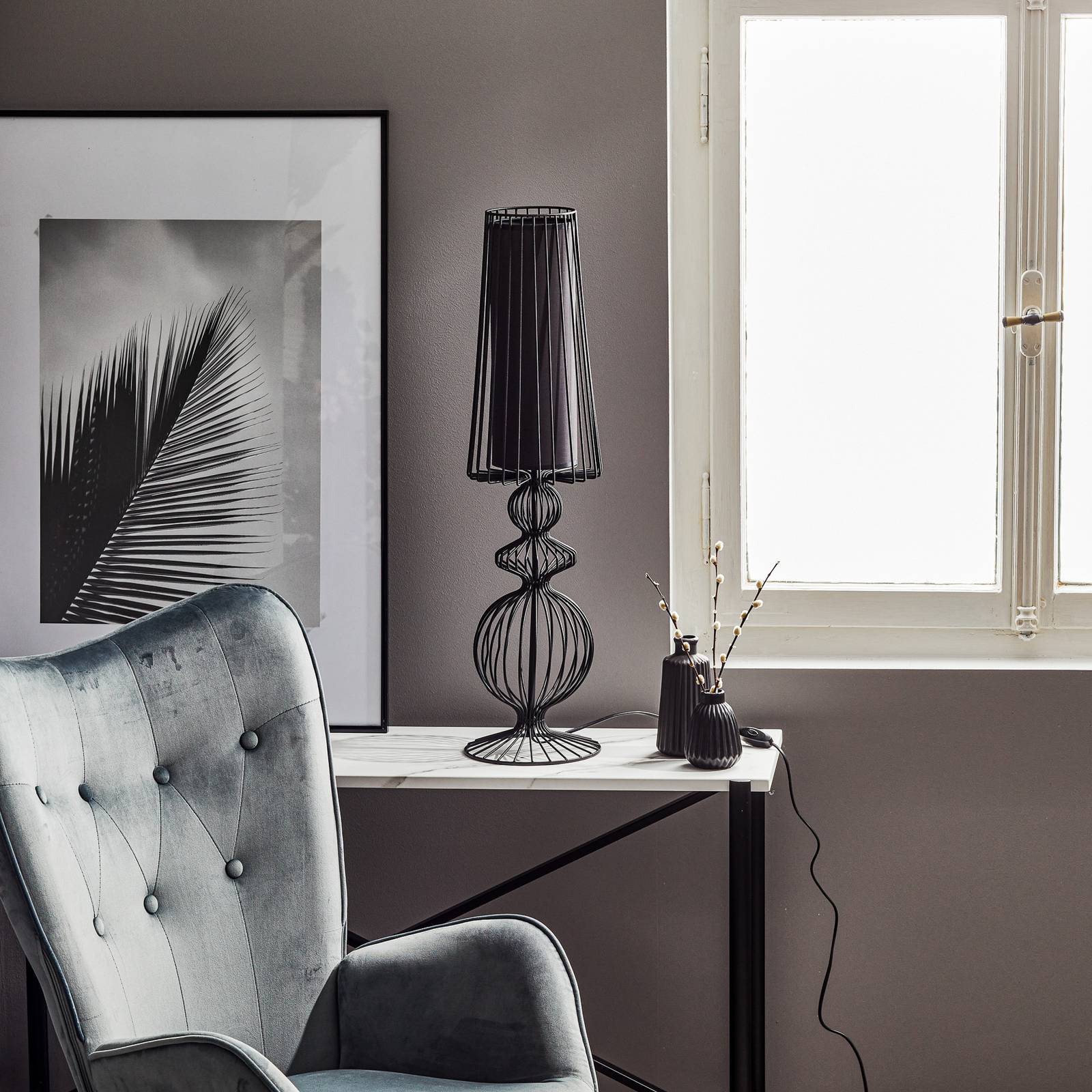 Euluna Stolní lampa Aveiro L z kovu, výška 78cm černá, Obývací pokoj / jídelna, ocel, tkanina, E27, 40W, K: 78cm