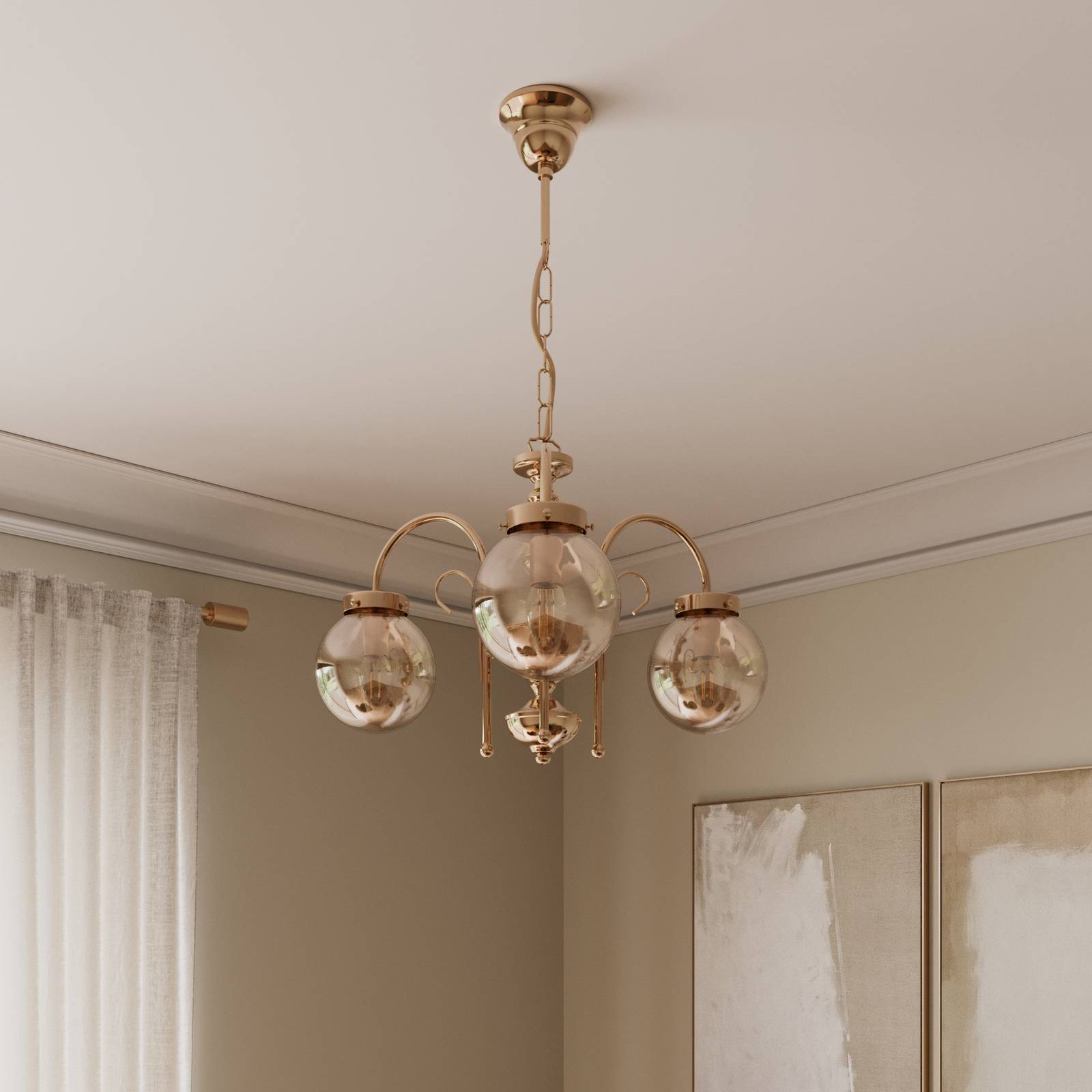 Alfa Lustr Hector, zlatý, třísvětelný, Obývací pokoj / jídelna, Ocel, sklo, E14, 40W