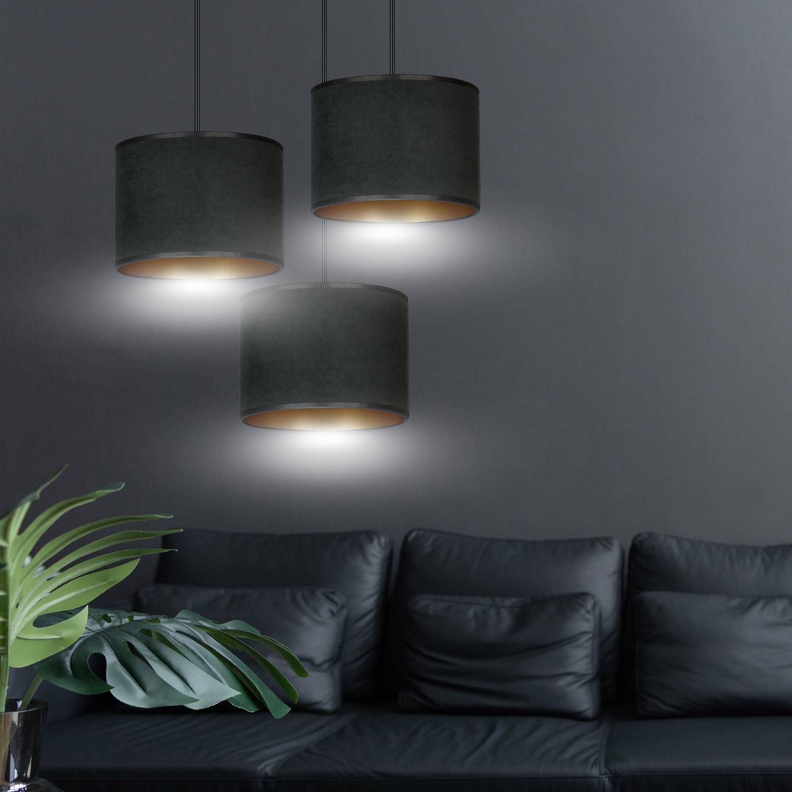EMIBIG LIGHTING Závěsné světlo Jari 3 zdroje kulaté černá-zlatá, Obývací pokoj / jídelna, látka, ocel, E27, 60W