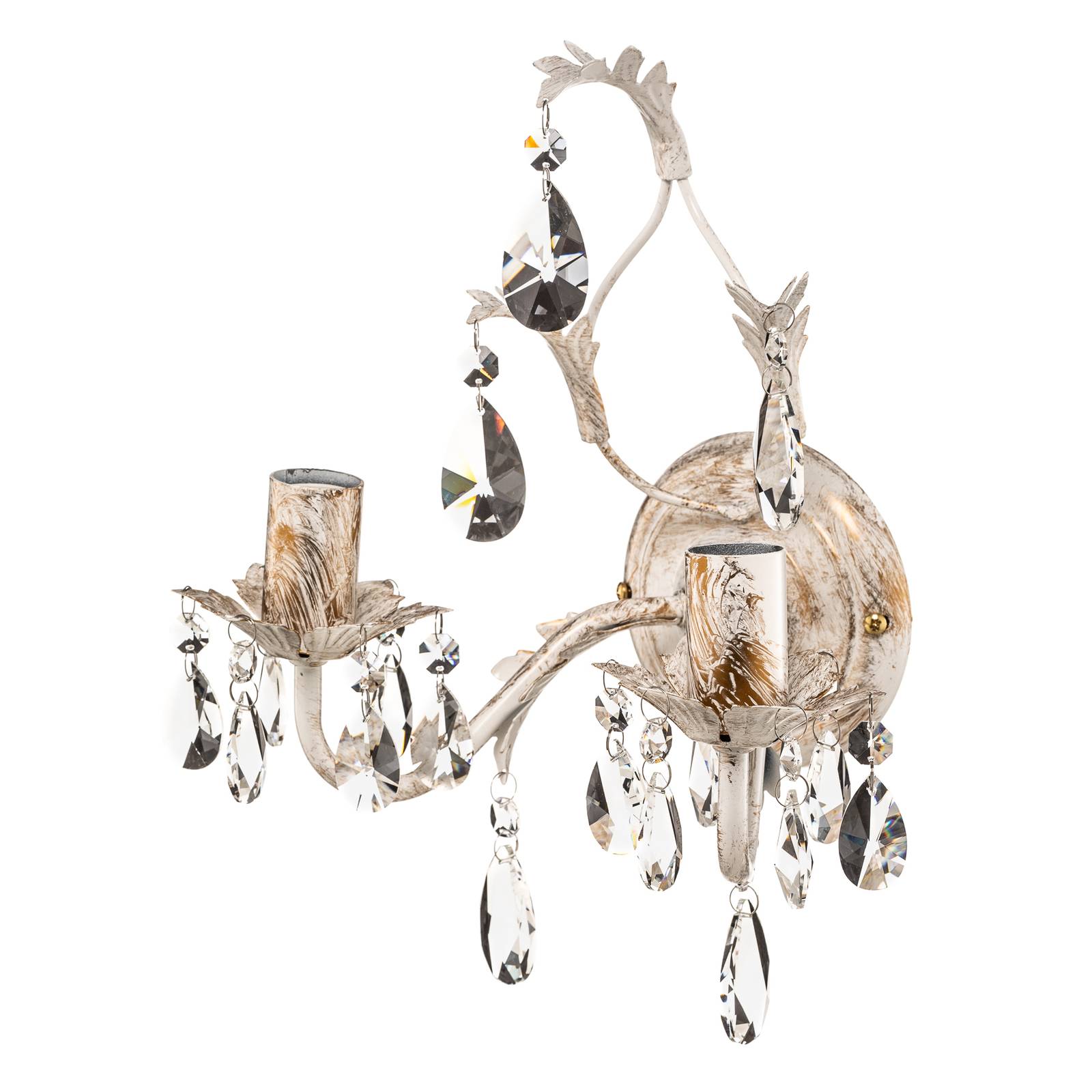 ONLI Křišťál nástěnné světlo Teresa slonovina 2 zdroje, Obývací pokoj / jídelna, kované železo, křišťálové sklo K9, E14, 6W, L: 30 cm, K: 30cm