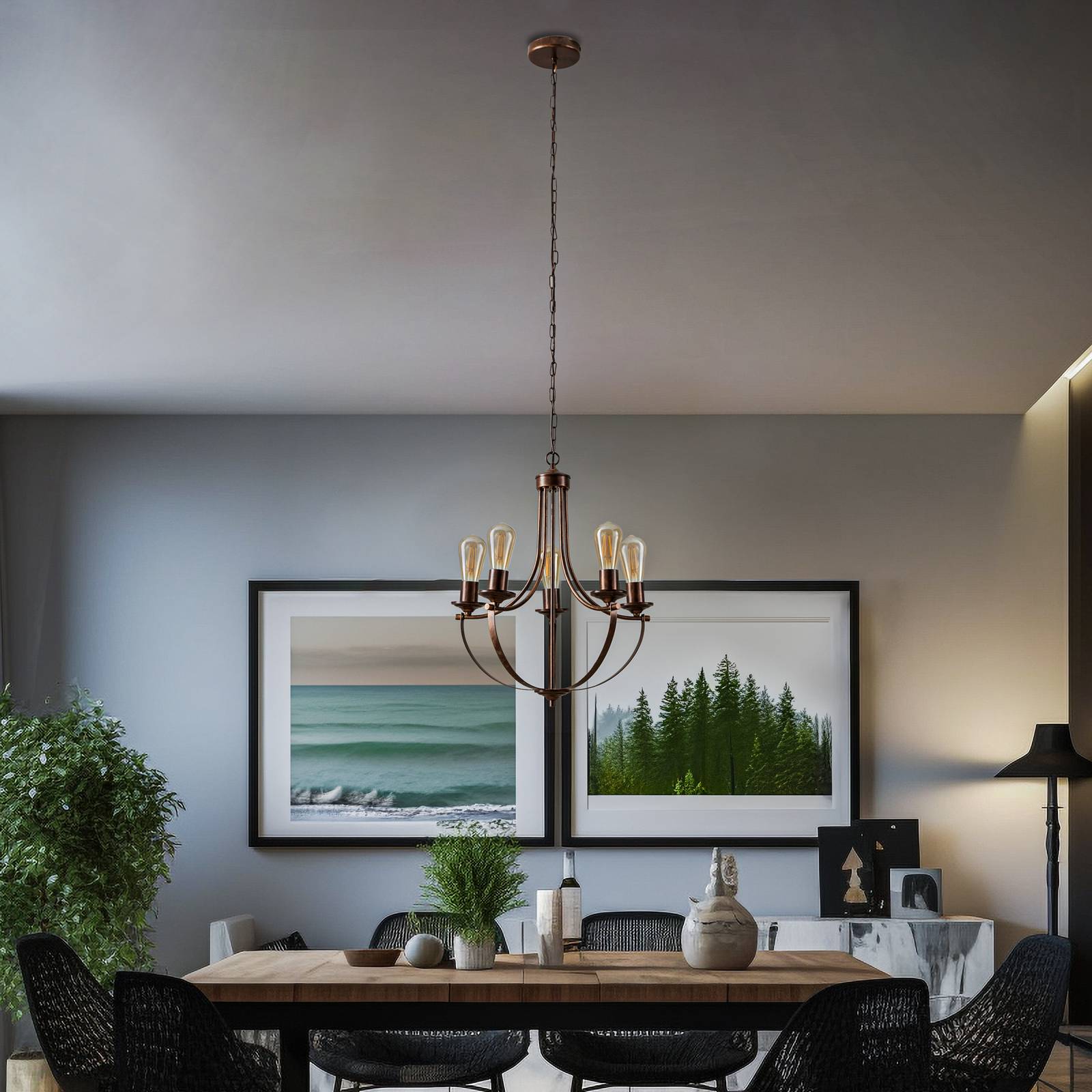 Euluna Gina lustr v hnědé barvě, 5 zdrojů, Obývací pokoj / jídelna, ocel, E27, 60W