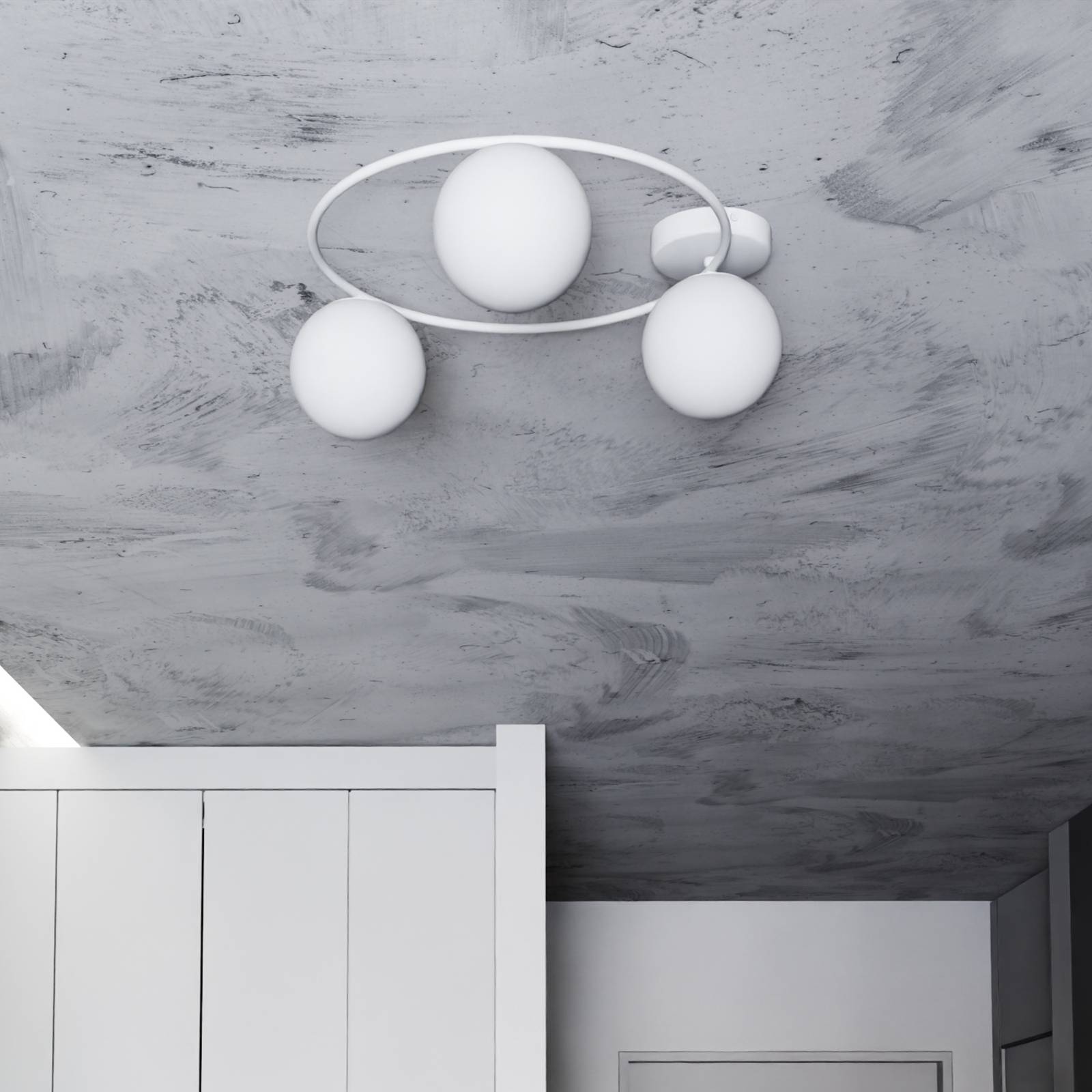 Euluna Stropní světlo Ascella, 3 zdroje, bílá/ opálová, Obývací pokoj / jídelna, ocel, sklo, E14, 10W, K: 20cm