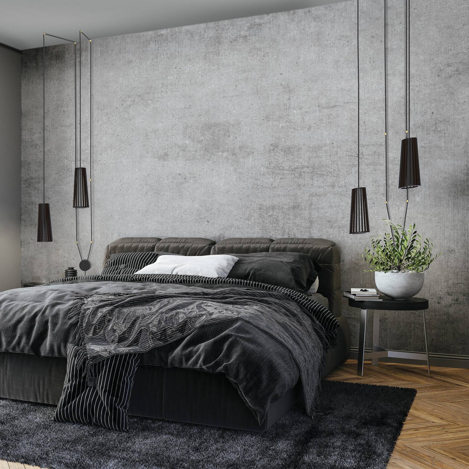 Euluna Stropní světlo Boucle se čtyřmi stínidly, šedá, Obývací pokoj / jídelna, bouclé, kov, E27, 15W, K: 33cm