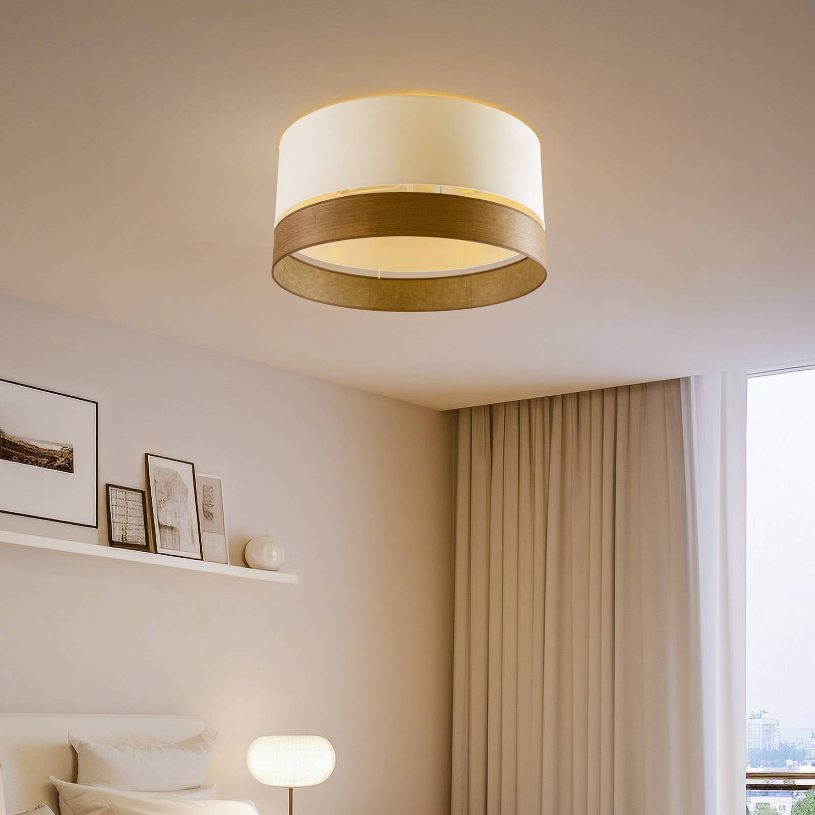 Euluna Levo stropní světlo, Ø60cm dub tmavý/ecru, Obývací pokoj / jídelna, textil, dýha, fólie, kov, E27, 15W, K: 30cm
