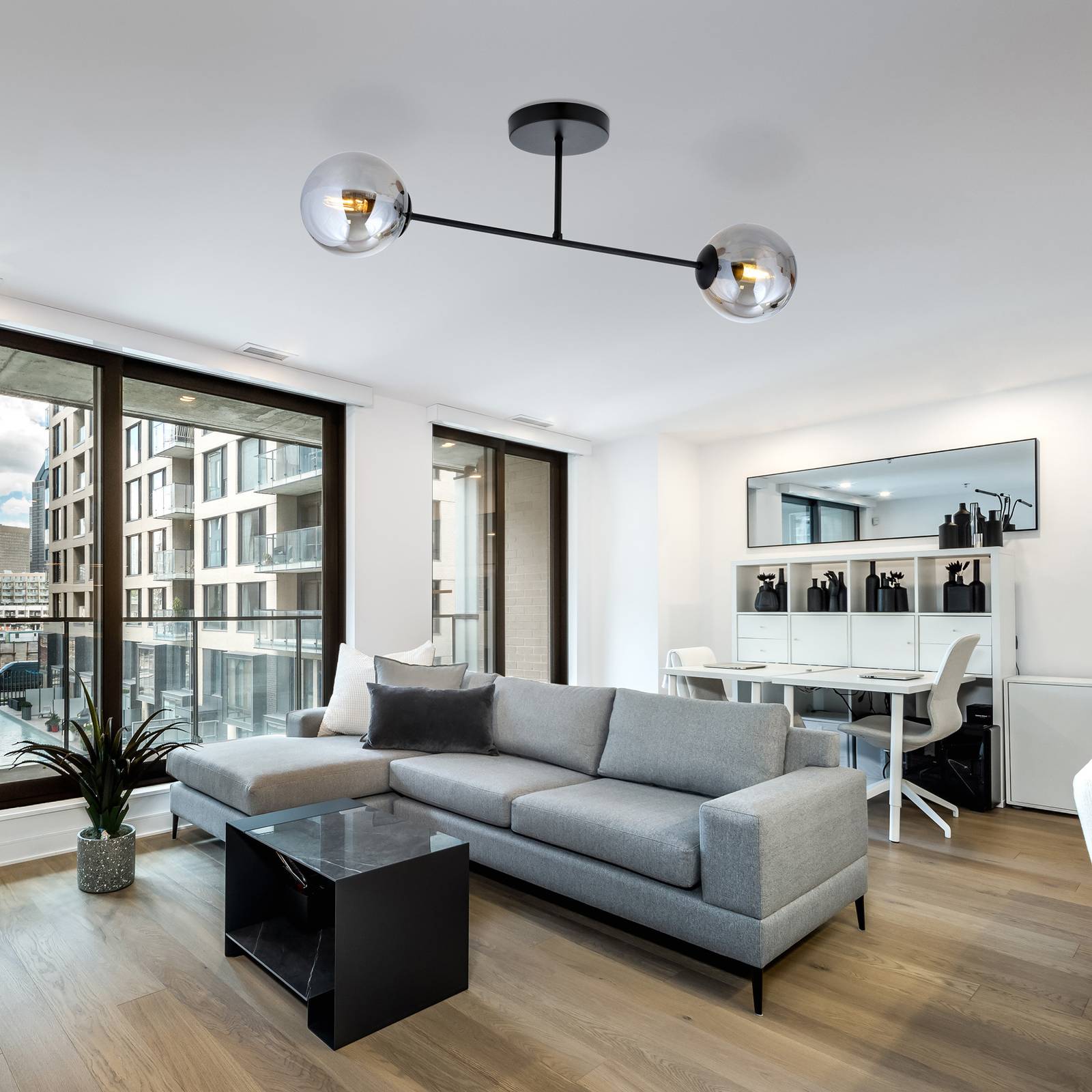 Euluna Skleněné stropní svítidlo, dvoubarevné, grafitové sklo, Obývací pokoj / jídelna, Ocel, sklo, E14, 10W, P: 75 cm, L: 14 cm, K: 26cm