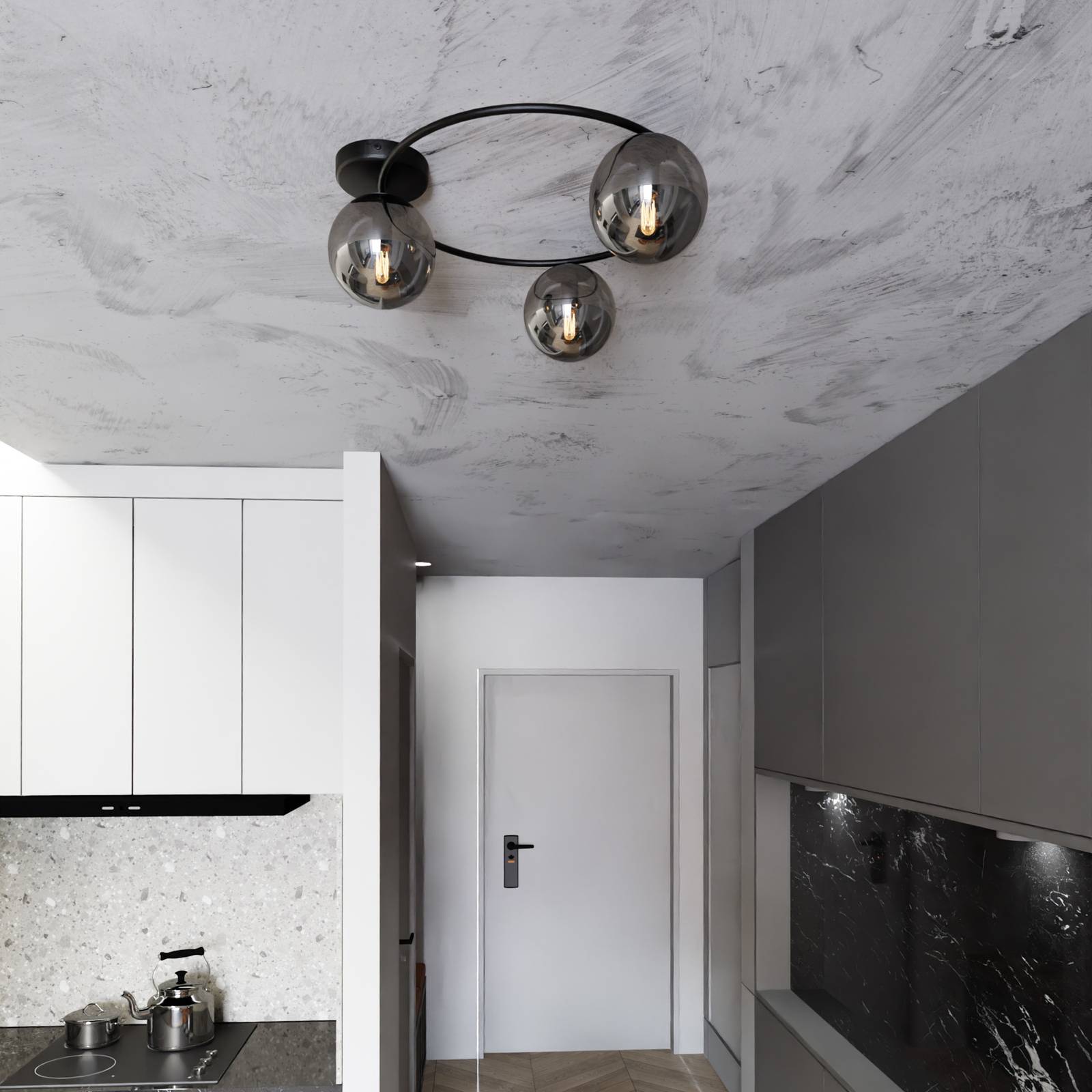Euluna Stropní světlo Ascella, 3 zdroje, černá/grafit, Obývací pokoj / jídelna, ocel, sklo, E14, 10W, K: 20cm