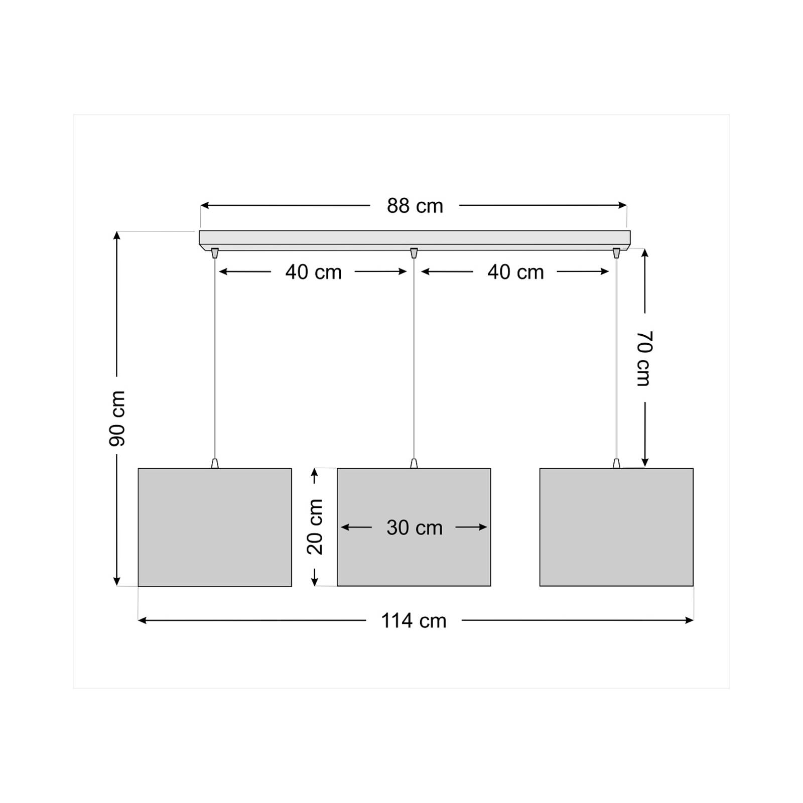 Euluna Závěsné světlo Susan, 3 zdroje, bílá/béžová/zlatá, Obývací pokoj / jídelna, kov, plast PVC, velur, E27, 60W, P: 114 cm, L: 30 cm, K: 20cm