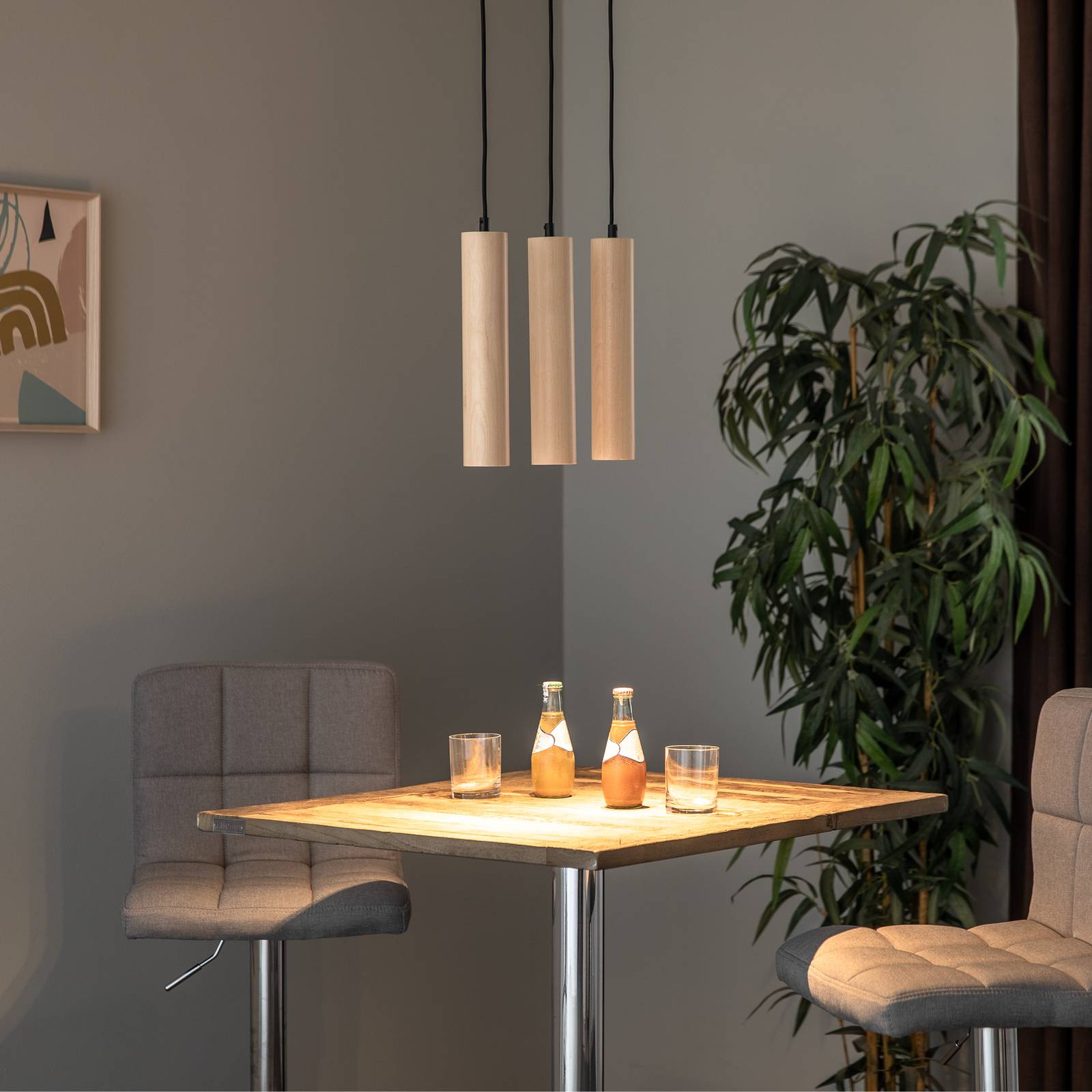 Euluna Závěsné světlo Tube ze dřeva, tři zdroje, Obývací pokoj / jídelna, dřevo, GU10, 40W, P: 30 cm, L: 6 cm, K: 30cm