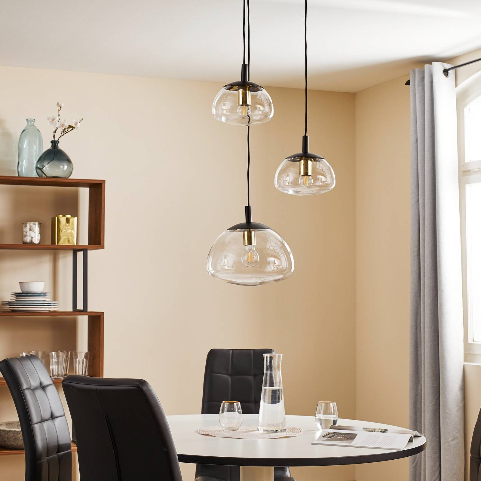 Euluna Závěsné světlo Turku kulaté tři zdroje čiré/černé, Obývací pokoj / jídelna, ocel, sklo, E27, 15W