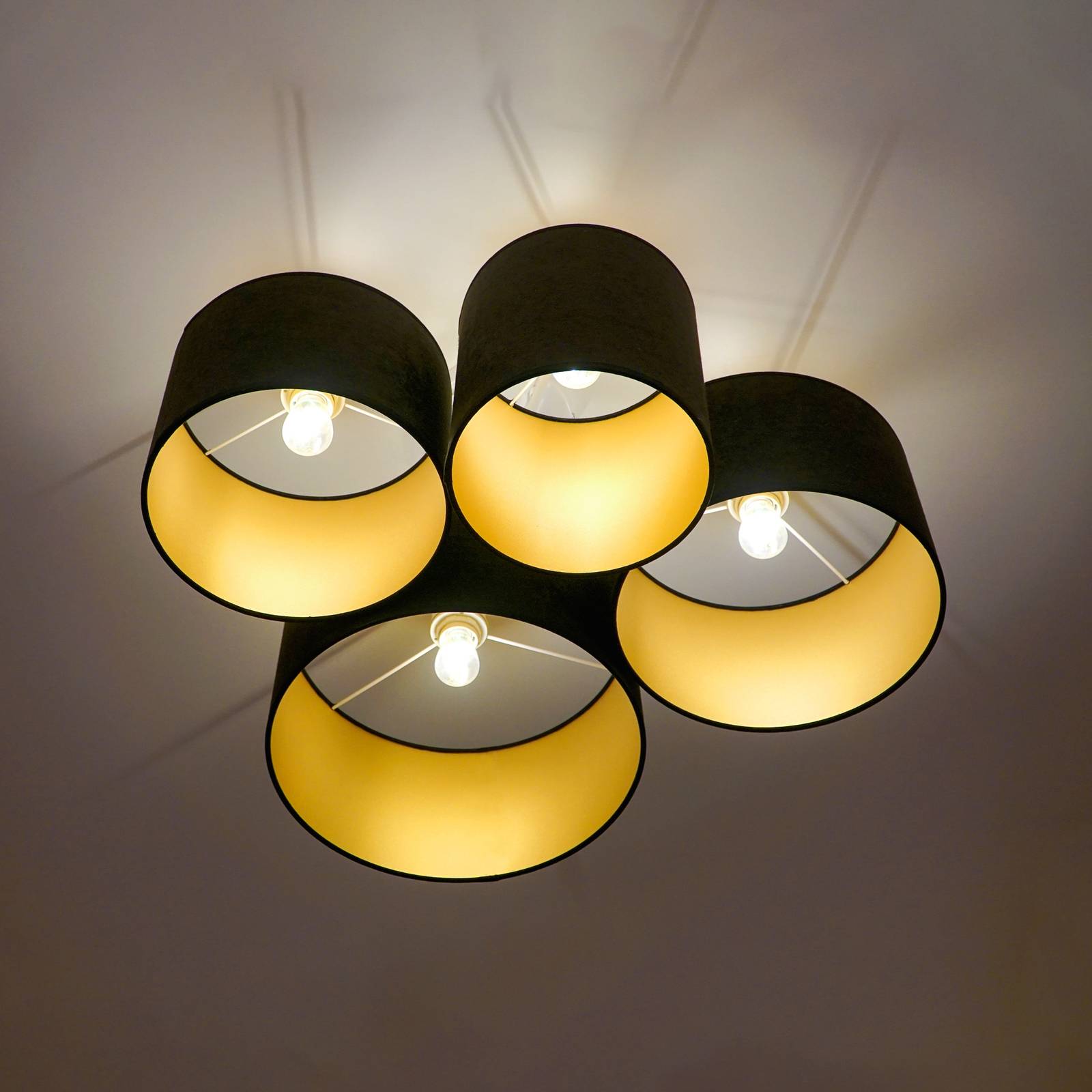 Euluna Lodge stropní světlo, 4 zdroje, černá/zlatá, Obývací pokoj / jídelna, textil, folie, kov, E27, 15W, P: 75 cm, L: 60 cm, K: 33cm