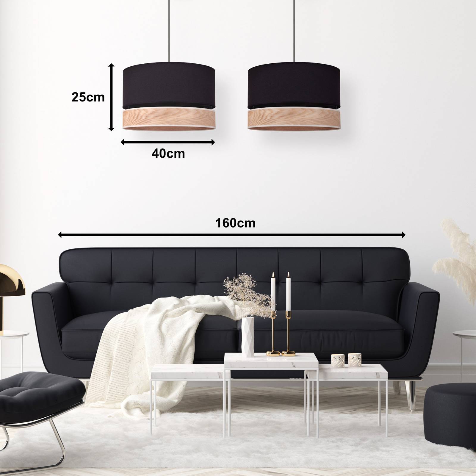 Euluna Levo závěsné světlo, Ø40cm dub světlý/černá, Obývací pokoj / jídelna, textil, dýha, fólie, kov, E27, 15W, K: 25cm