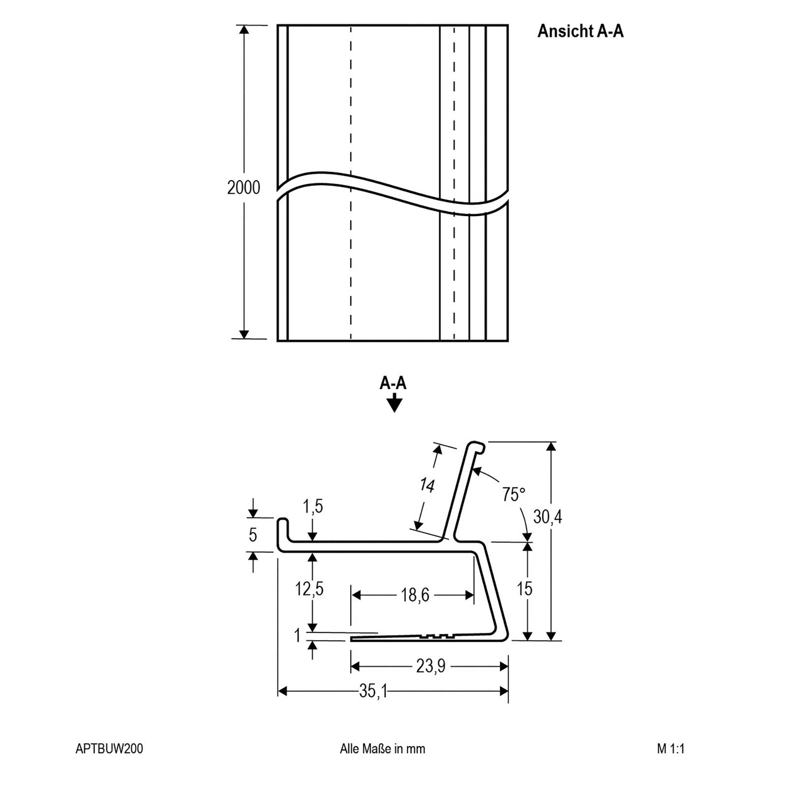 EVN APTBU hliníkový profil ke stěně 200cm bílá, hliník, P: 200 cm, L: 3.5 cm, K: 3.04cm
