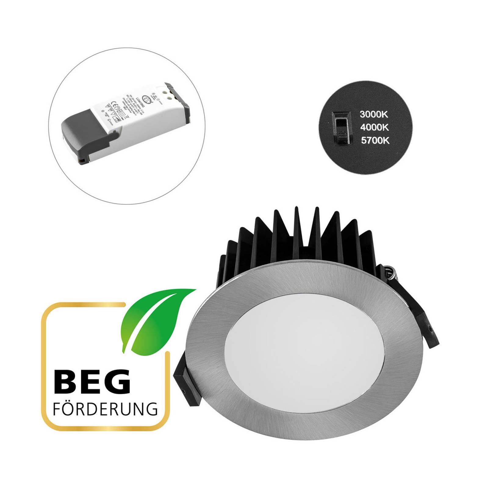 EVN Solido85, 230V, stmívatelné, CCT, chrom, hliník, plast, 10W, K: 4.3cm