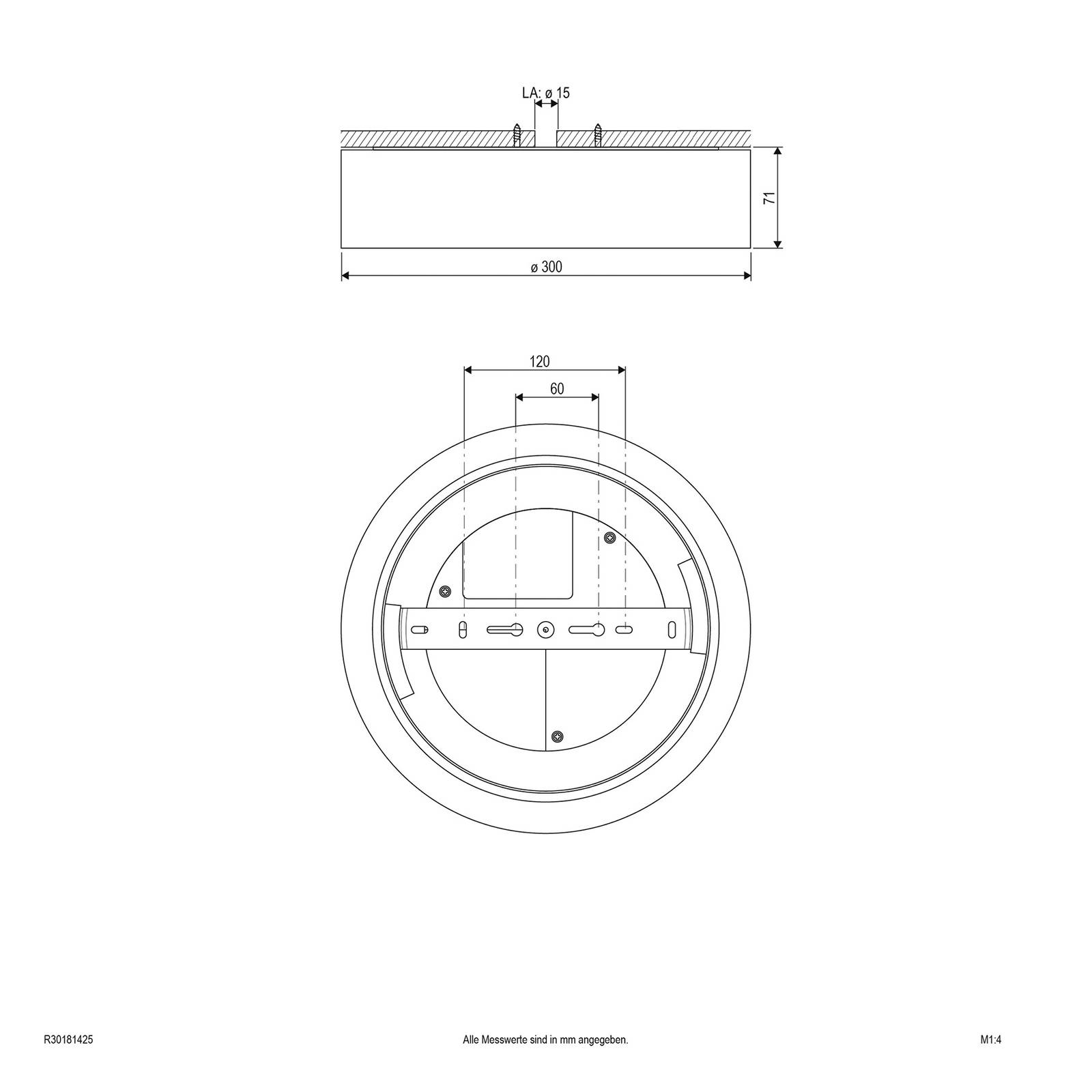 EVN Stropní svítidlo Sauro LED, Ø 30 cm, stříbrná, Chodba, Plastové, 18W, K: 7.1cm