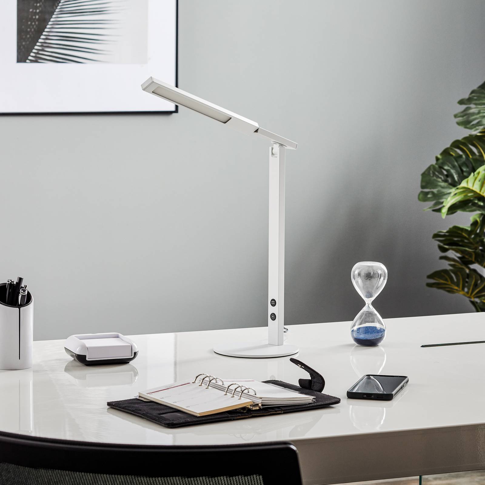 Fabas Luce LED stolní lampa Ideal se stmívačem, bílá, Pracovna / kancelář, hliník, 10W, K: 69cm