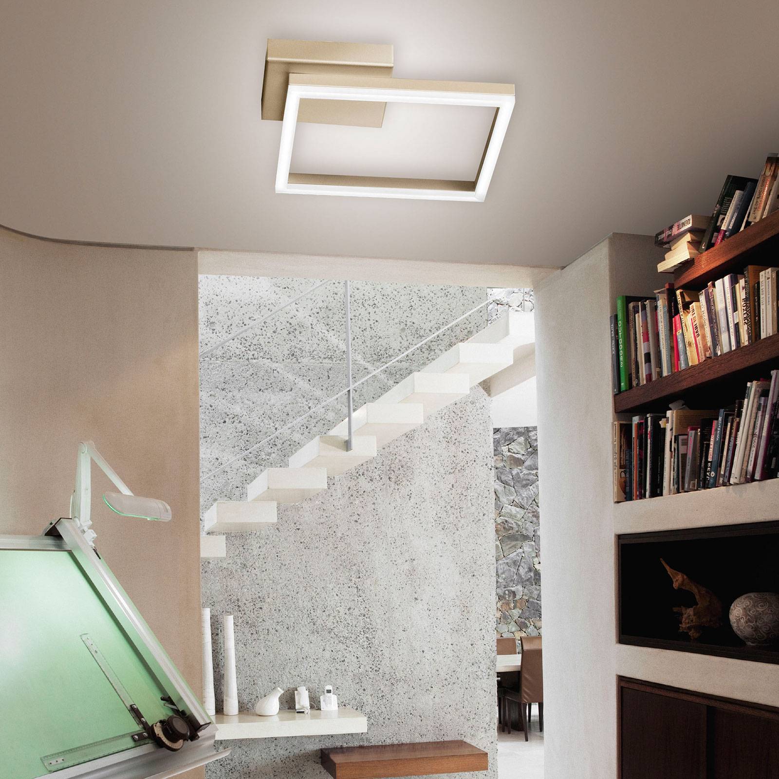 Fabas Luce LED stropní světlo Bard, 27x27cm, matná zlatá, Obývací pokoj / jídelna, kov, plast, 22W, P: 27 cm, L: 27 cm, K: 5.5cm