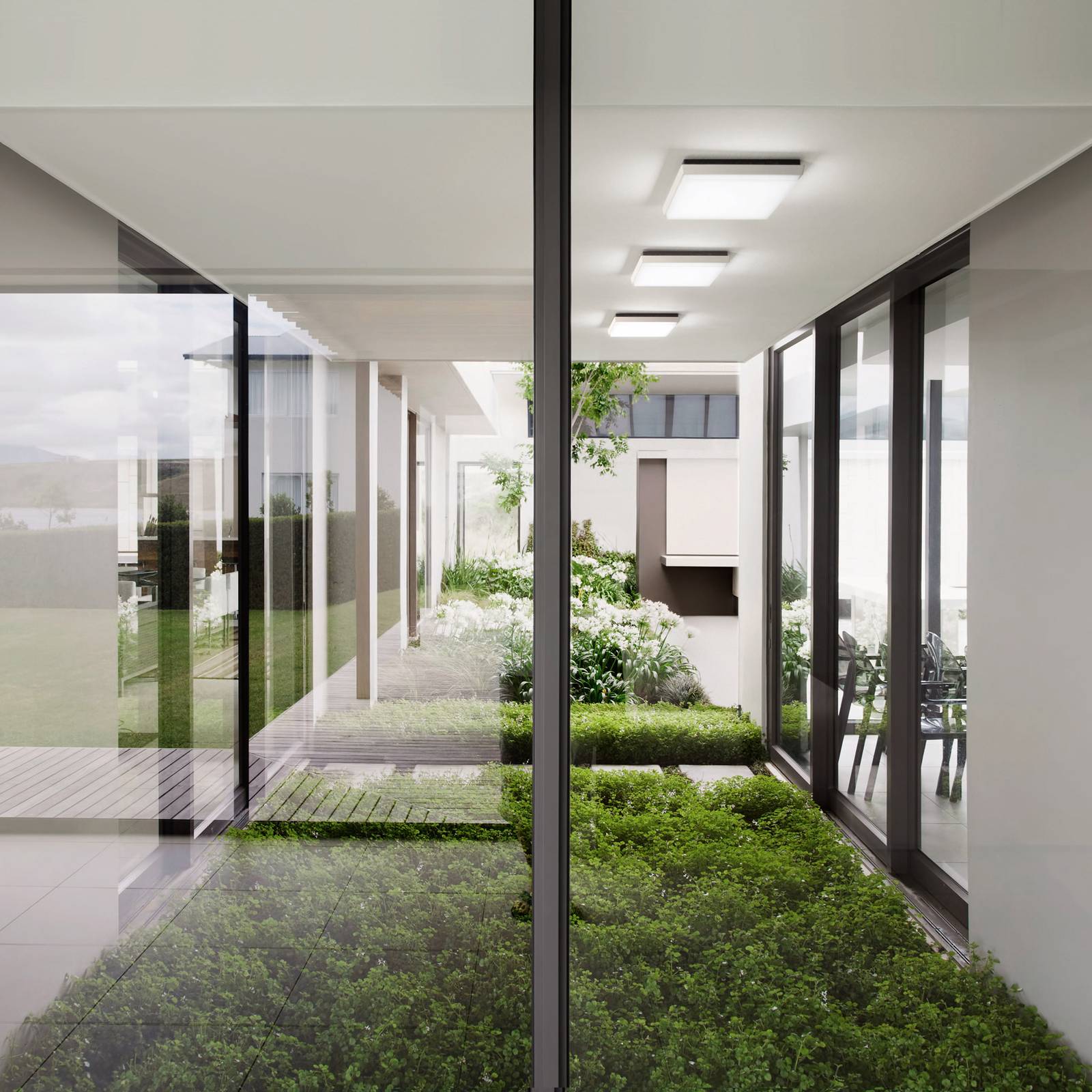 Fabas Luce LED venkovní stropní svítidlo Desdy, 30x30cm, bílá, hliník, polykarbonát, 30W, P: 30 cm, L: 30 cm, K: 5cm